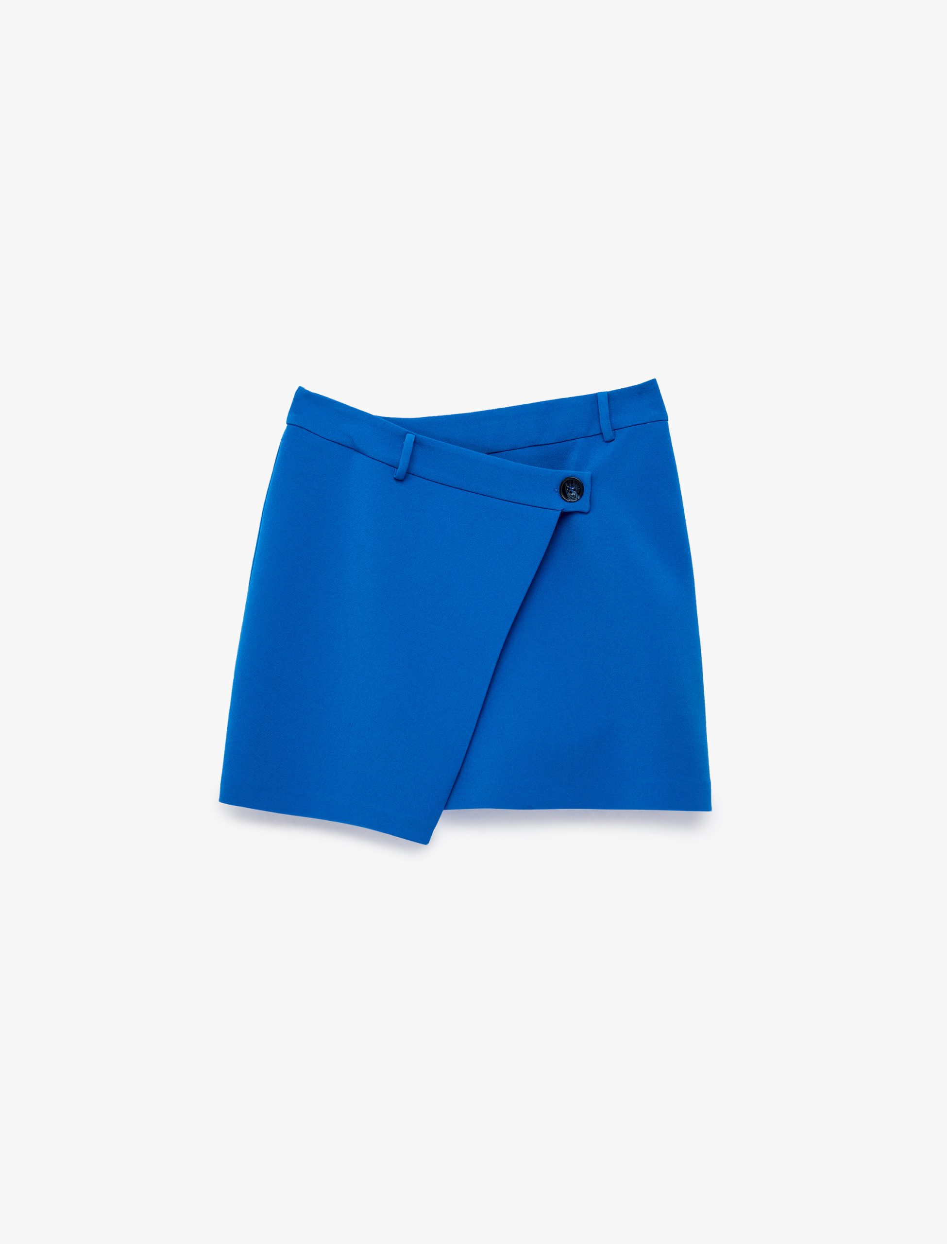 This mini skort offers an elegant and modern style. The side button closure detail and asymmetric cut add a dynamic touch to the skort. With its comfortable yet chic design, this skort is perfect for any time of day. Featuring a standard waist height for a flattering silhouette, it’s an ideal choice to refresh your daily style for summer!