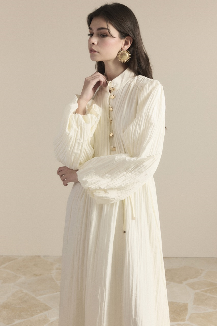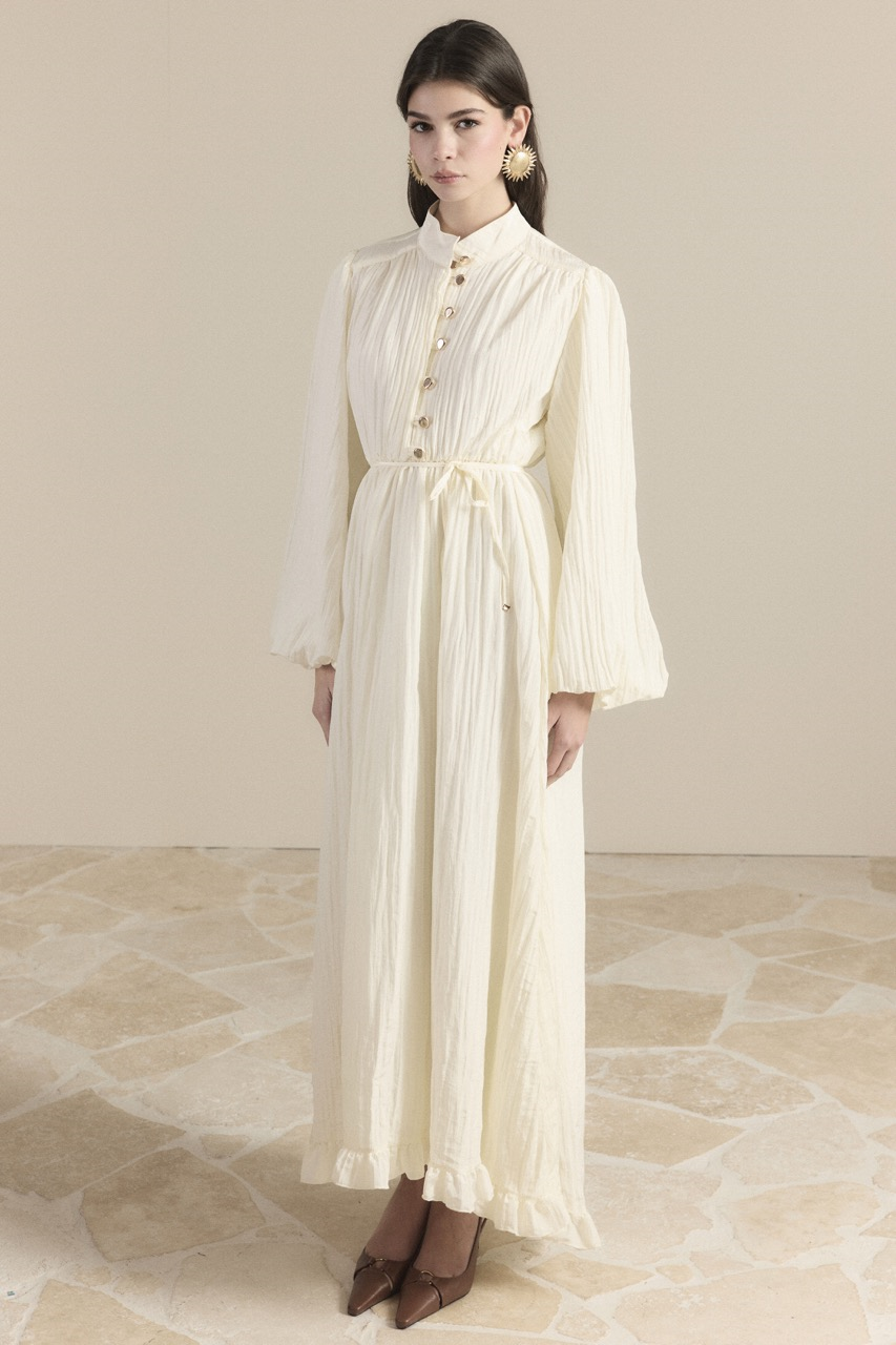 Be the first to review “Asymmetrical Ruffled Pleated Dress – Ecru” Cancel reply