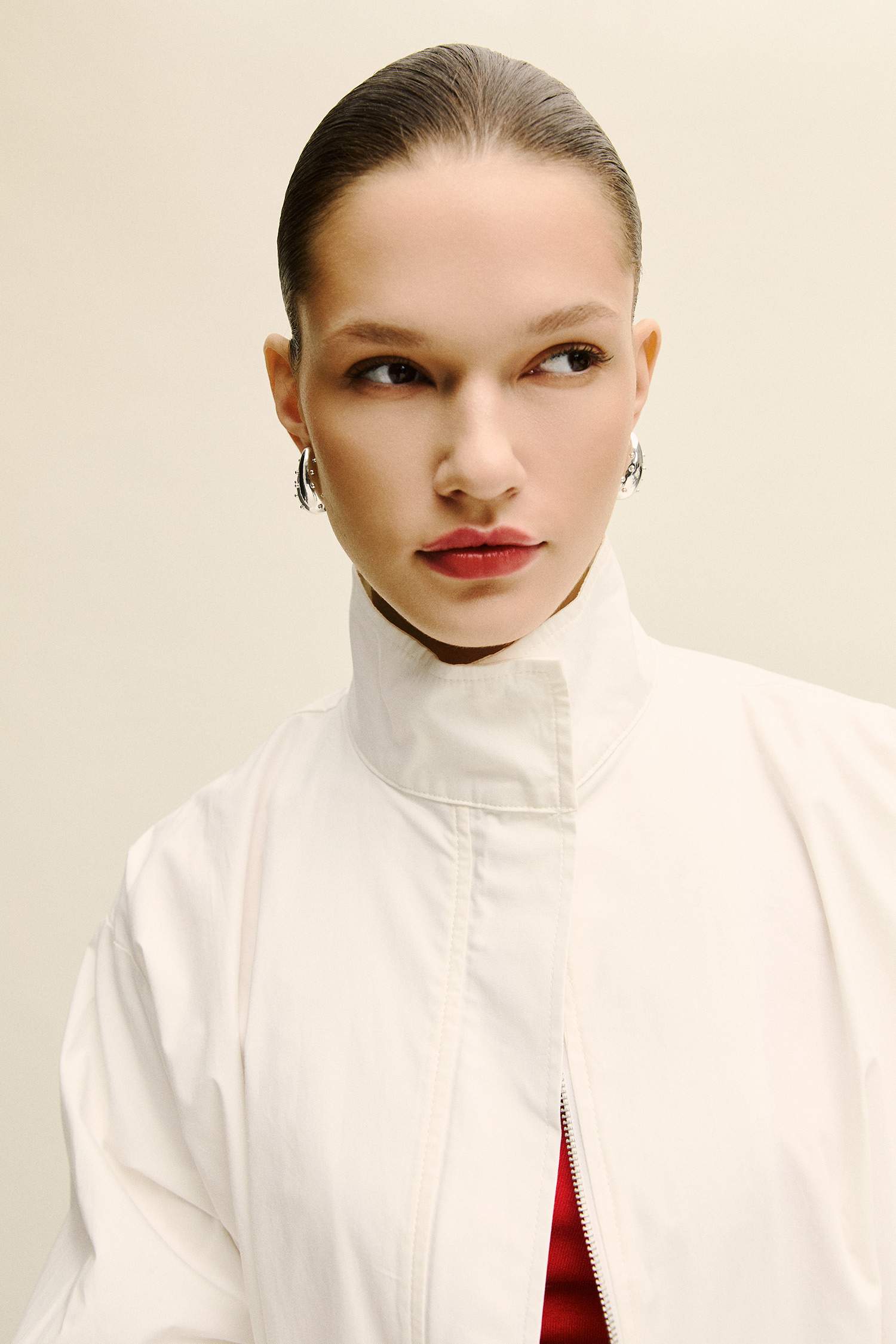 Tags: balloon fit stand collar poplin jacket, ecru balloon fit stand collar poplin jacket, ecru women balloon fit stand collar poplin jacket, women balloon fit stand collar poplin jacket