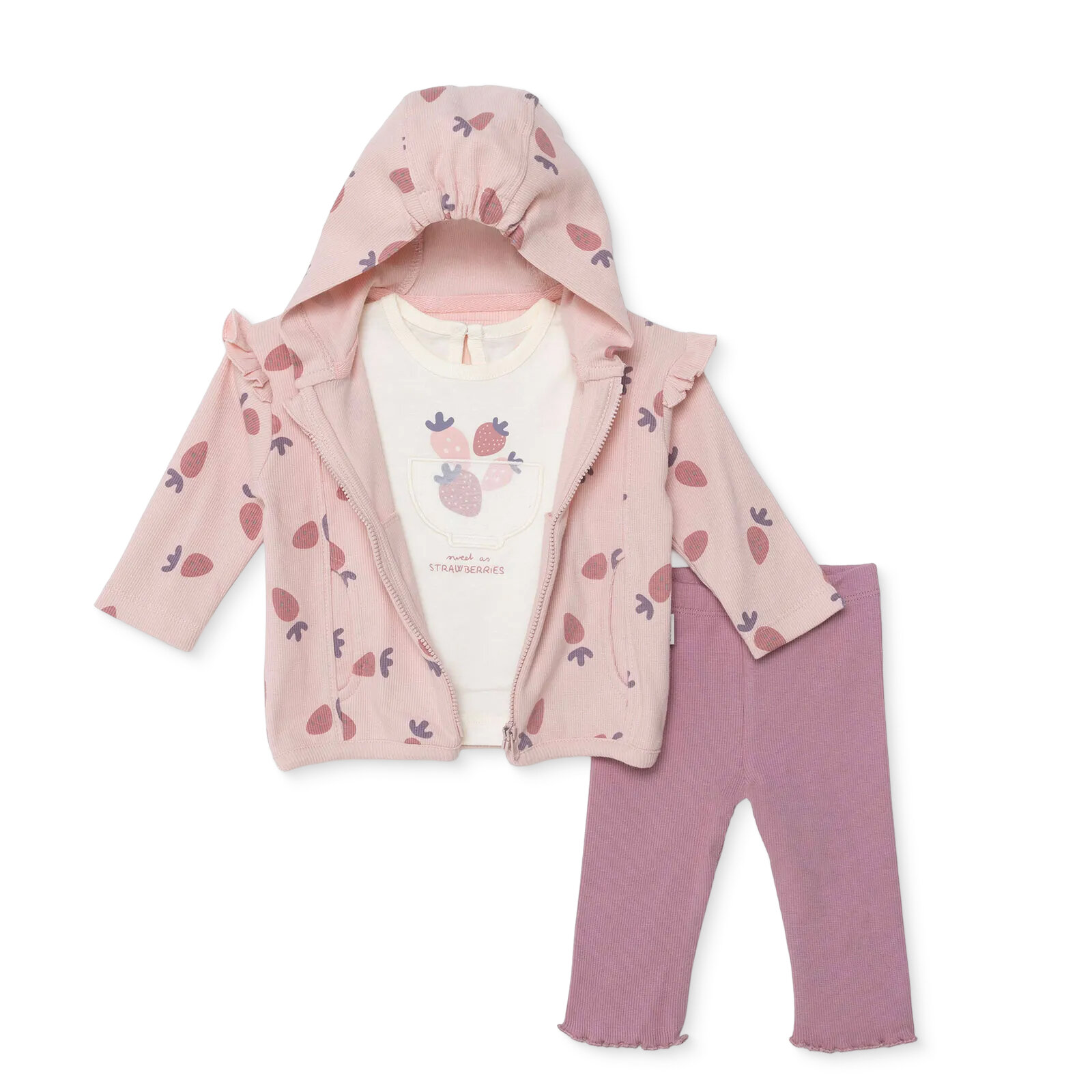 Bebetto, Girl, Sweatshirt-Hoodie-Bottomless Set, Fruit Print, Zippered, Strawberry, Round Neck, Long, Long Sleeve
