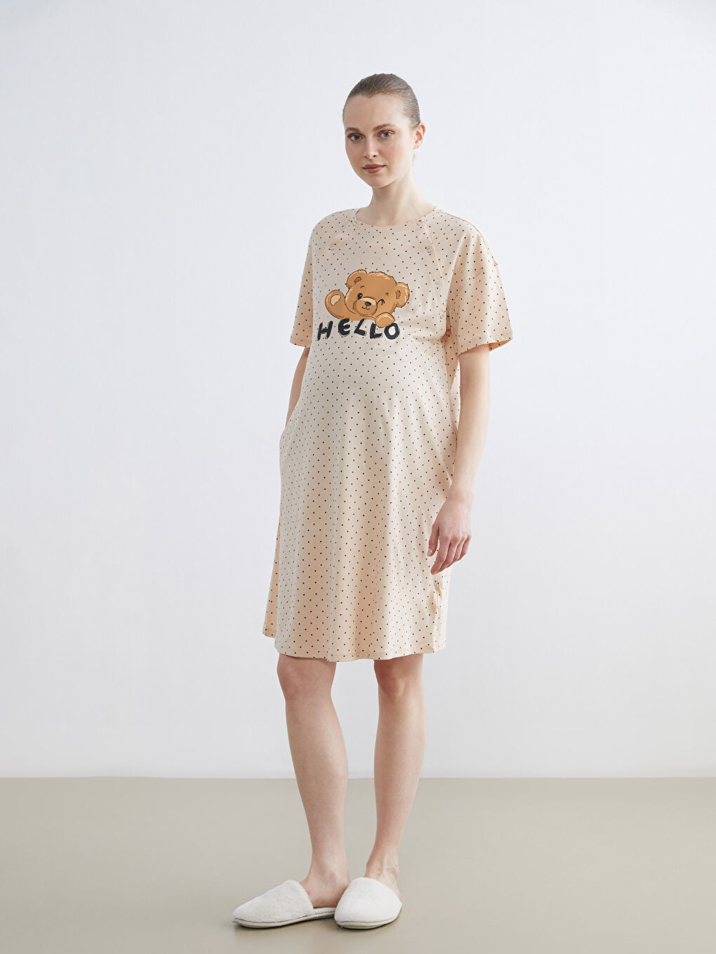 LCW DREAM Beige Bicycle Neck Polka Dot Maternity Nightgown with exclusive discounts, installment options, and cash on delivery advantages at LCW! Shop online now and have the product delivered to your door! – S6AT69Z8-LQB