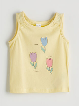 Beige Bicycle Neckline Girl Baby Vest and T-Shirt Set