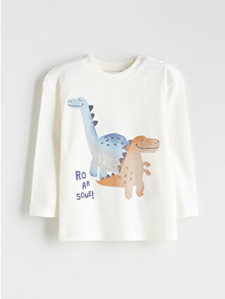 Ecru Crew Neck Mickey Mouse Print Boys’ Baby T-Shirt