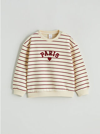 Beige Crew Neck Embroidered Baby Girl Sweatshirt