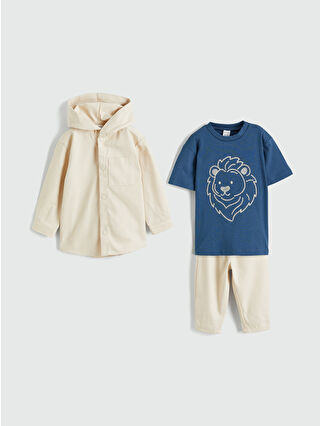 Beige Hooded Boy Baby 3-Piece Set