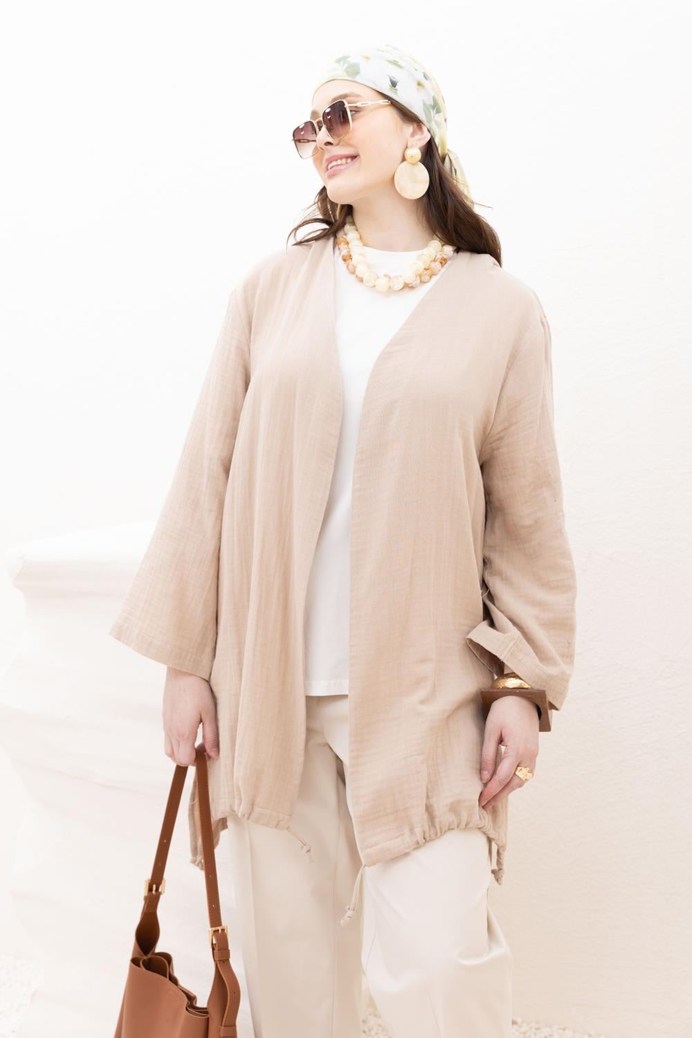 Achieve a modern and comfortable style with the Beige Ruffled Hem Muslin Top. Explore other models in ALLDAY’s Top category. Discover the Beige Ruffled Hem Muslin Top now to complete your outfit!