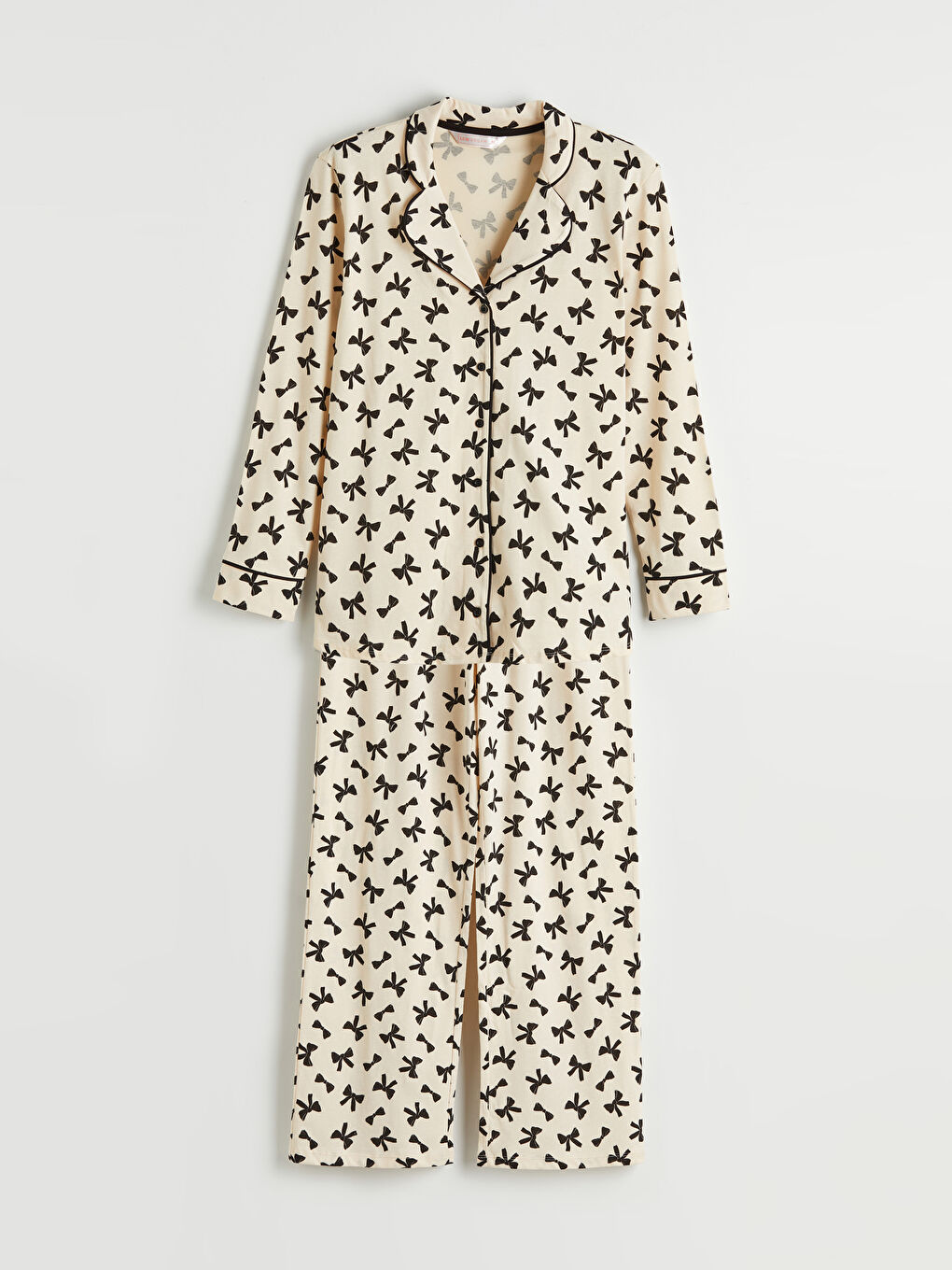 LCW DREAM Beige Shirt Collar Bow Print Maternity Pajama Set with exclusive discounts, installment plans, and cash on delivery advantages at LCW! Shop online now and have the product delivered to your door! – S6A584Z8-LQB