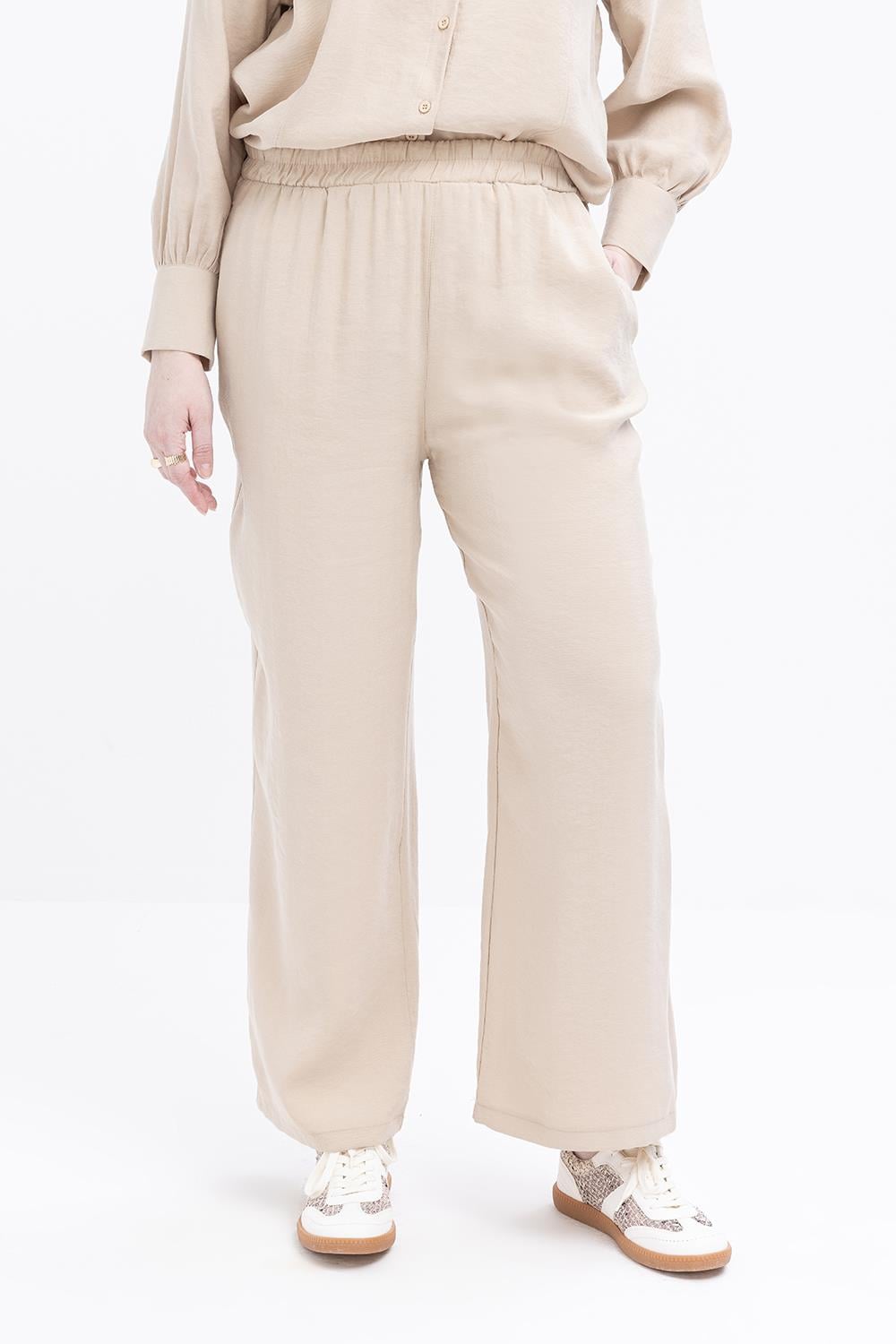 Tags: beige, comfortable, elastic waist, modal fabric, Plus Size, slit detail, summer fashion, trouser set, wide leg
