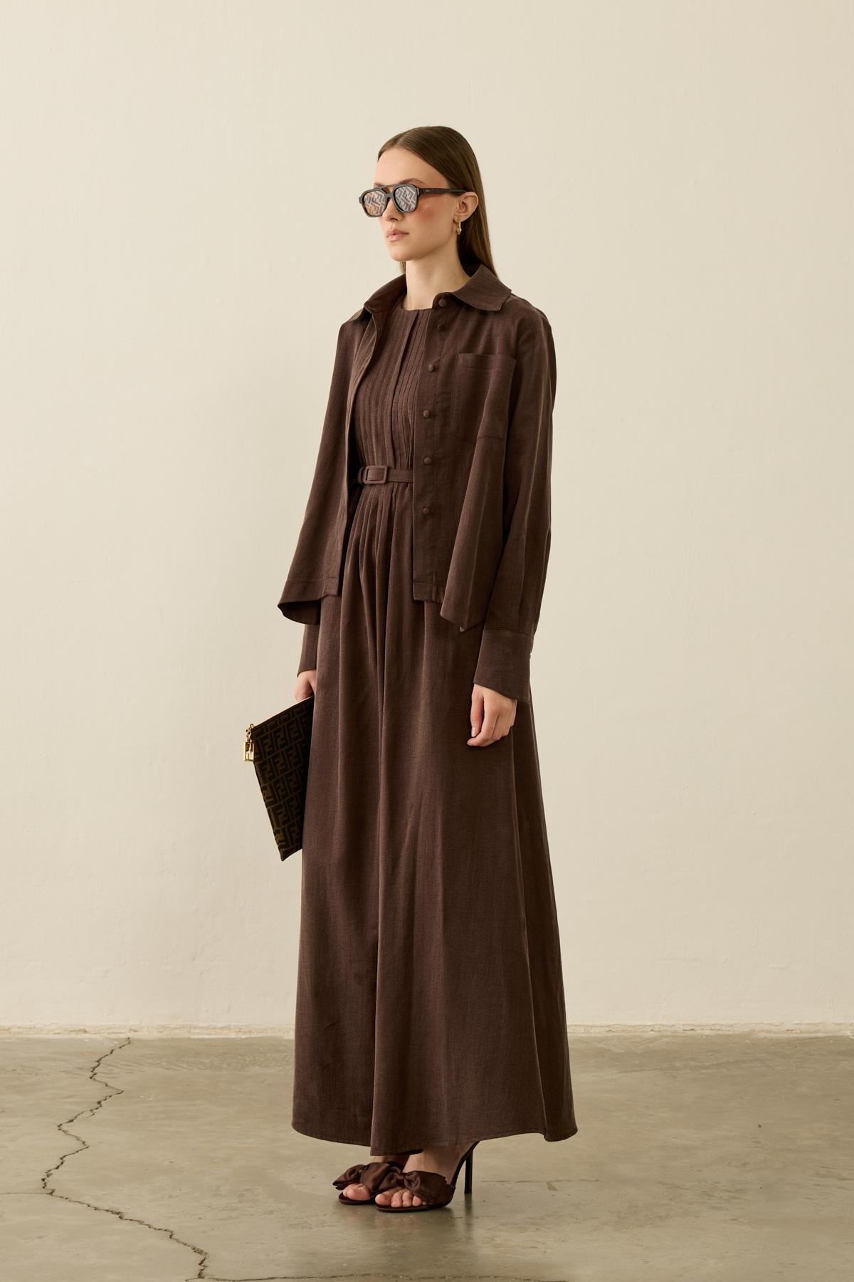 Bella Pileli Asymmetric Cut Lyocell Lining Dress Set in BROWN