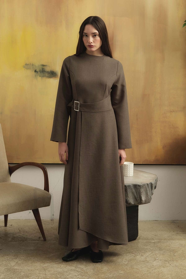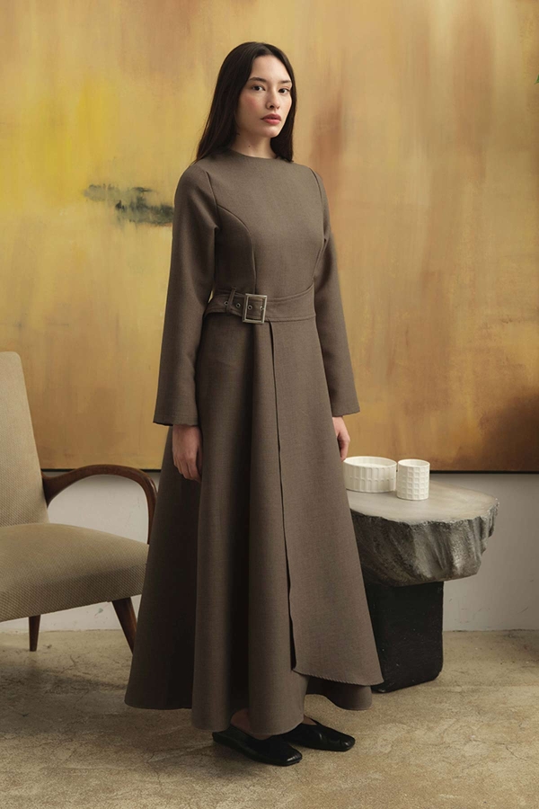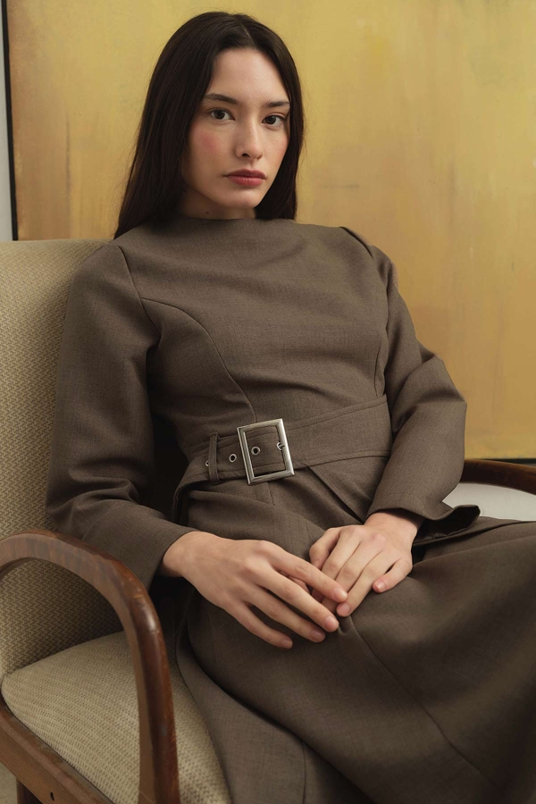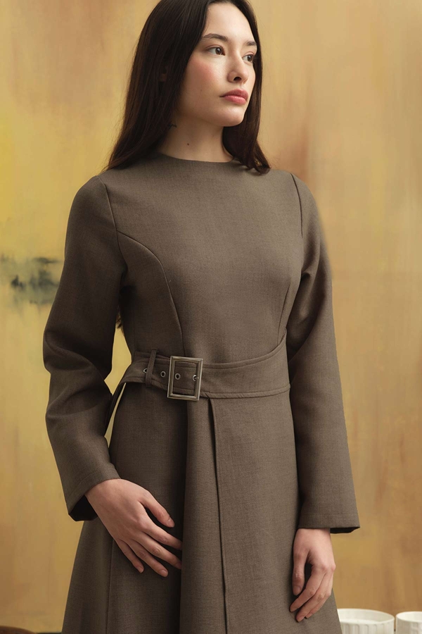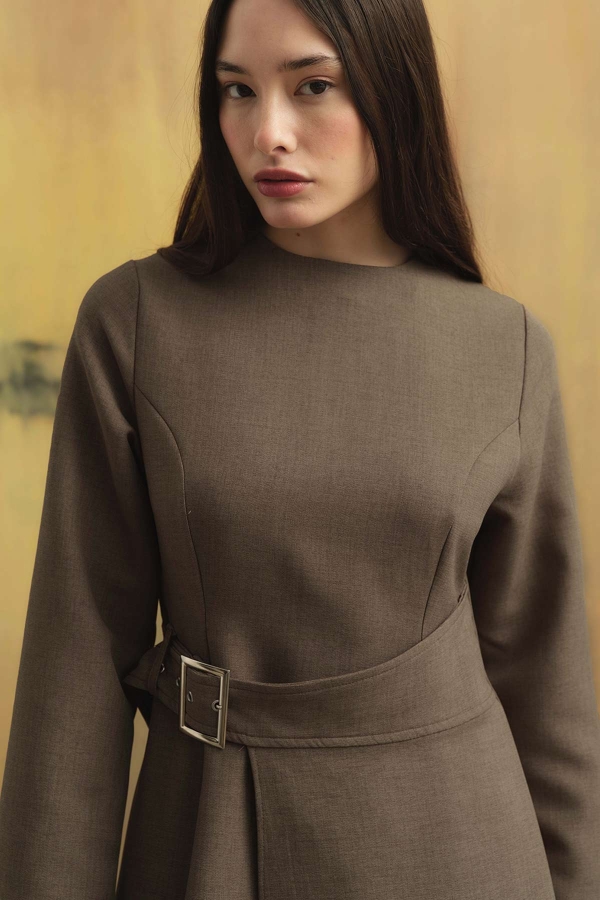 Belt Buckle Detailed Mink Dress
