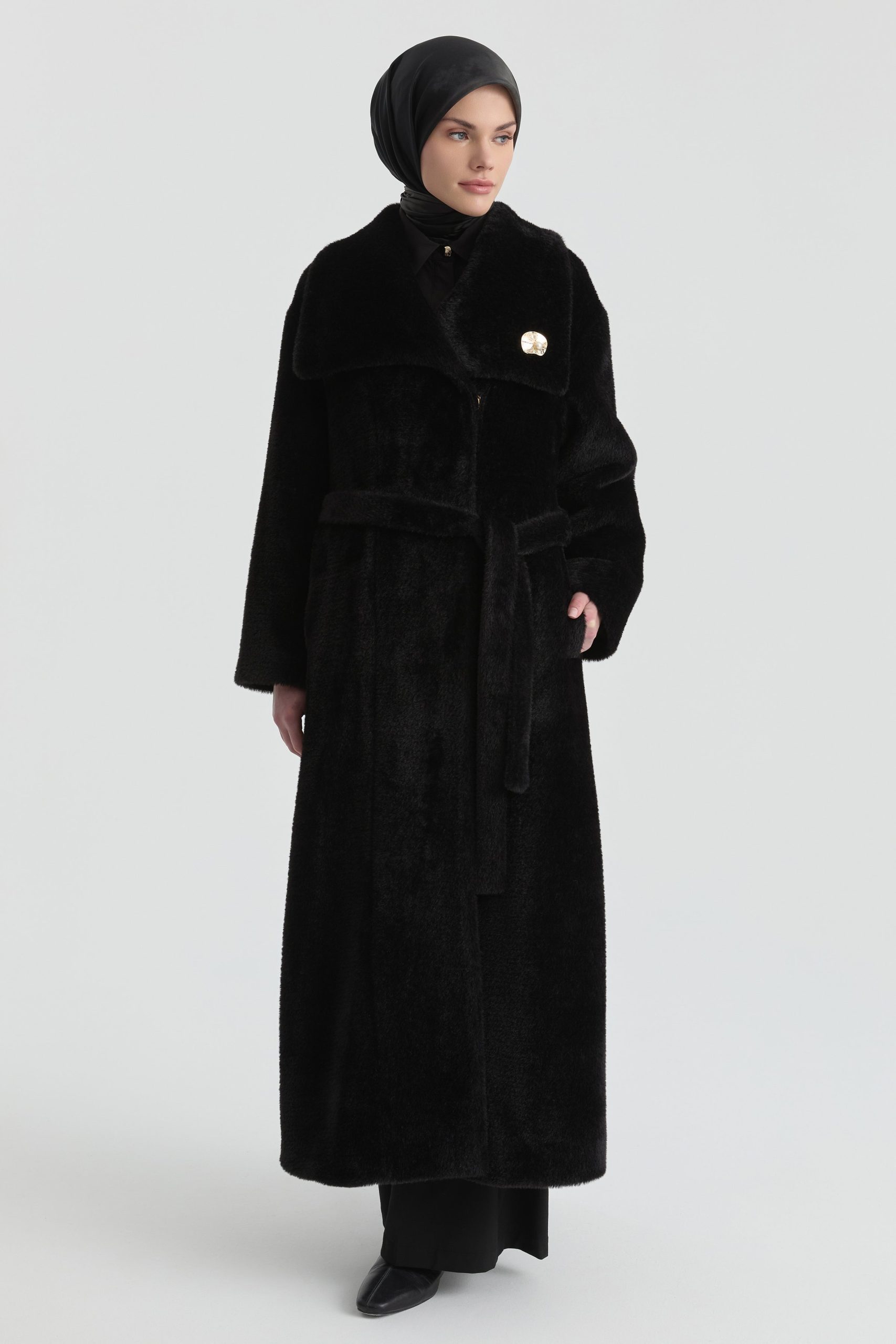Belt-Detailed Coat – Black