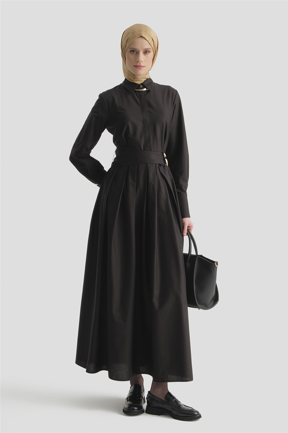 Tags: belted dress, black dress, cotton dress, everyday wear, premium fashion, timeless style, women's clothing