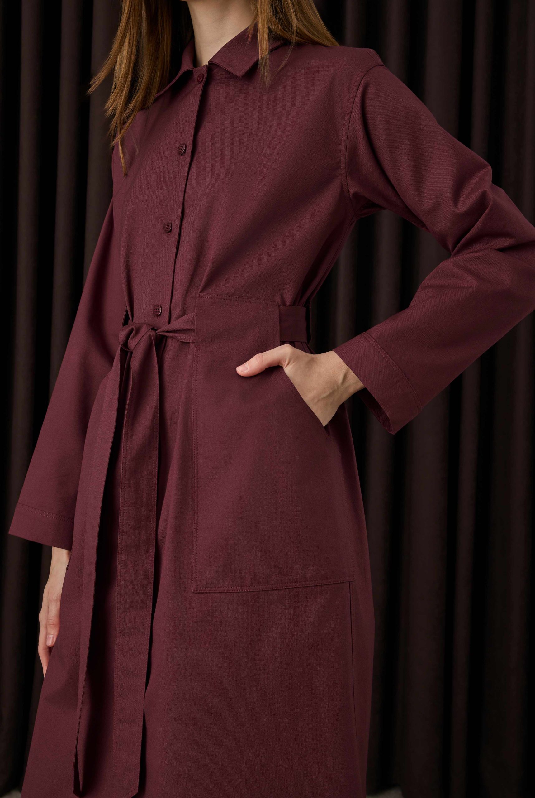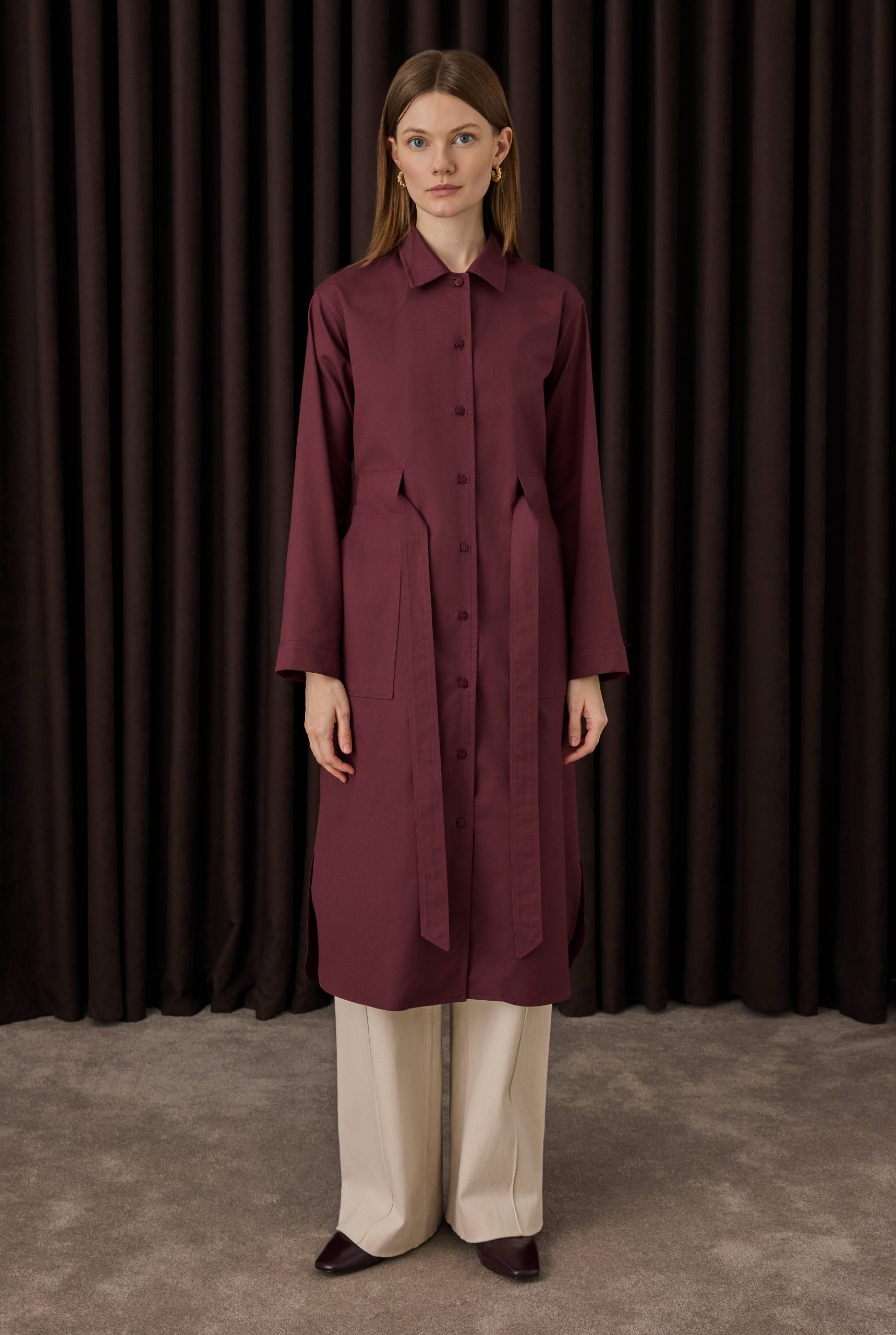 Made from 100% cotton and specially woven fine gabardine fabric, this shirt offers all-day comfort with its breathable structure, natural softness, and lightweight texture. The durable and firm nature of cotton gabardine gives the shirt a refined and long-lasting form. The oversized pocket details and the belt design at the waist add a modern and distinctive touch, while its unique silhouette brings a sporty twist to the classic shirt style. It can be easily styled for both casual looks and more polished urban outfits. It has a true-to-size fit; those who prefer a more relaxed look may opt for one size up. Your regular size will provide the ideal fit. Care instructions: Wash at 30°C with similar colors. Do not use bleach. Lenght: 112 cm (Product lenght may vary by 1-5 cm between production batches.) Size Chart: Bust Hips Sleeve Biceps Size 36: 109 cm 114 cm 55,5 cm 41 cm Size 38: 113 cm 118 cm 56 cm 43 cm Size 40: 117 cm 122 cm 56,5 cm 45 cm Size 42: 121 cm 126 cm 57 cm 47 cm Model’s Measurements:Height: 175 cmBust: 81 cmWaist: 60 cmHips: 89 cmThe Size Worn by the Model: 36