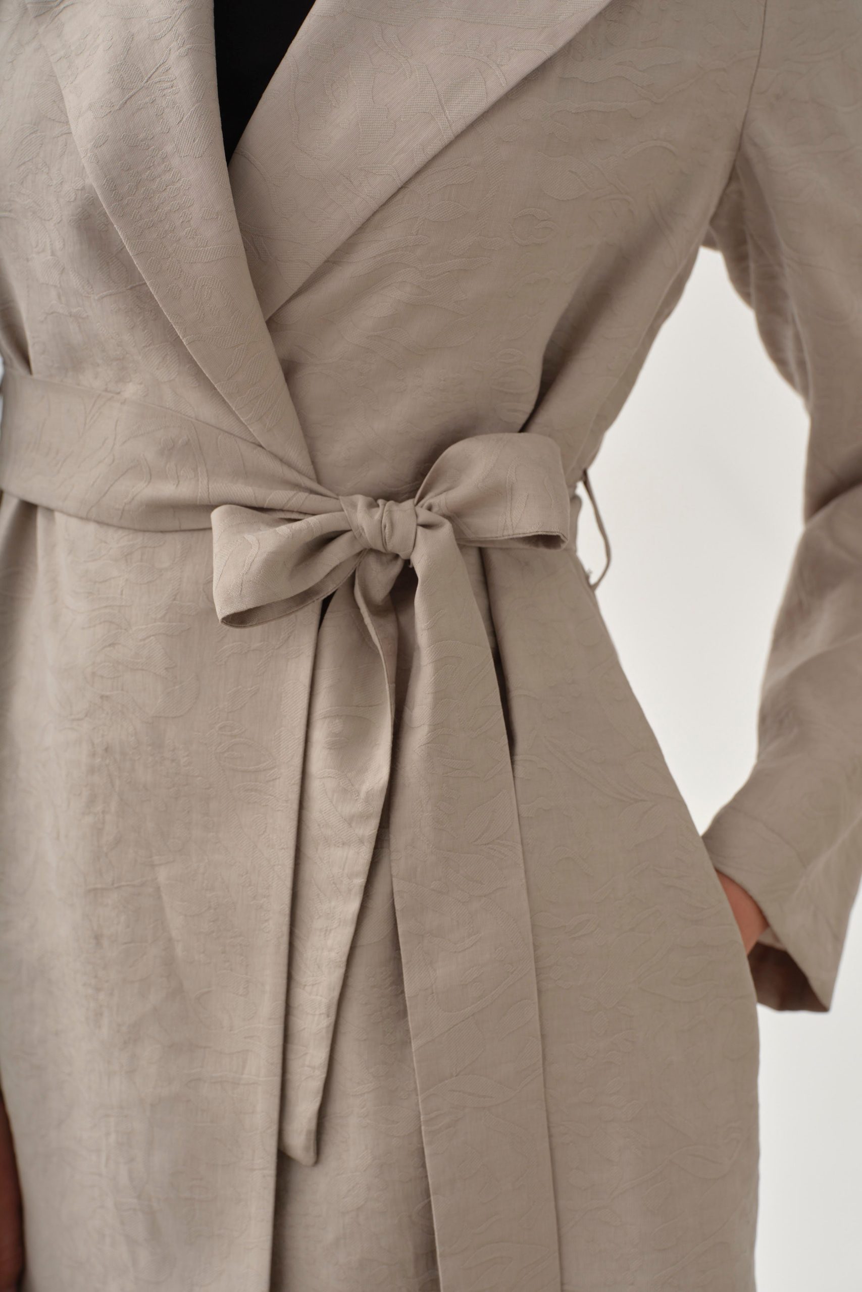 Belted Jacquard Jacket – Stone