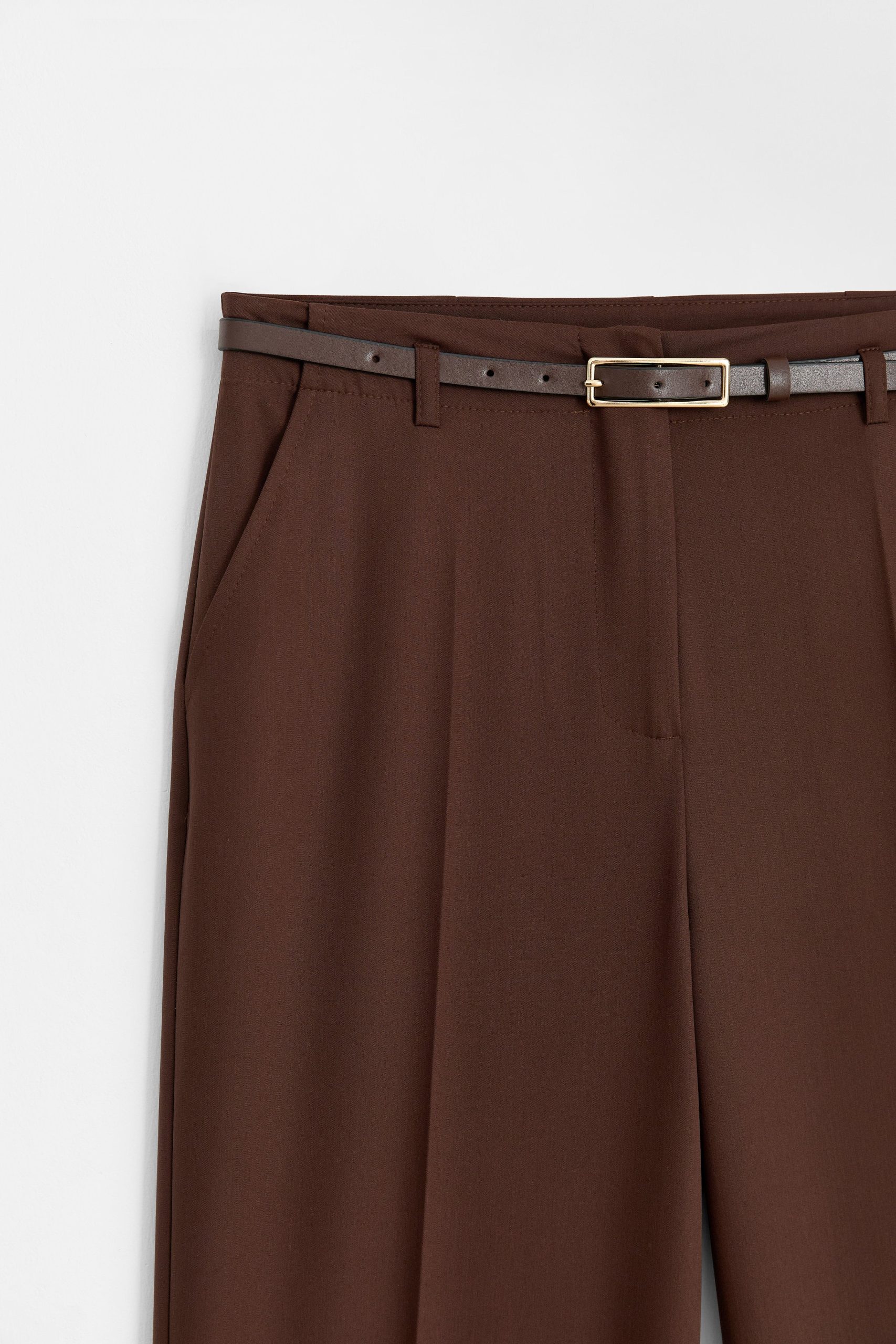 Tags: belted trousers, coffee brown, fashion pants, regular fit, side zip