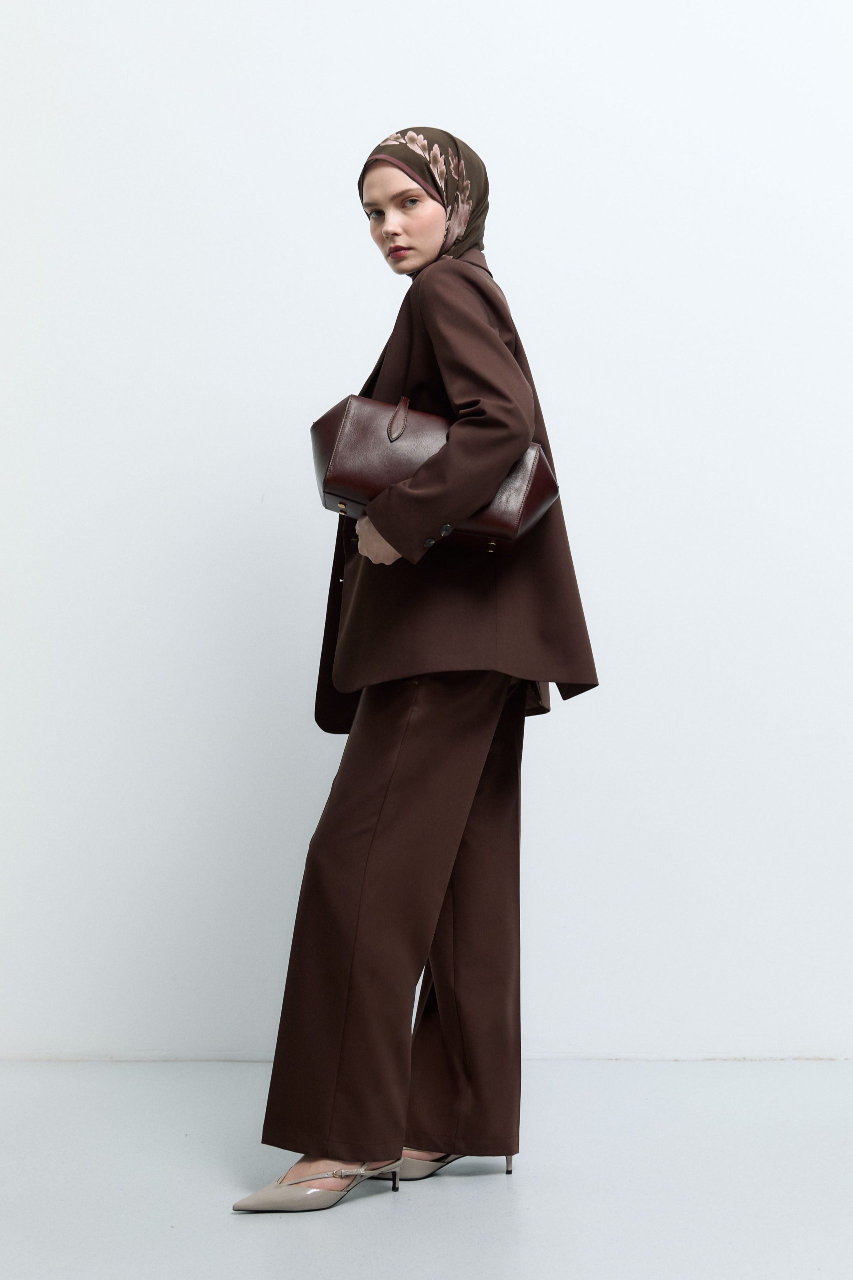 Double Pleated Trousers in Bitter Brown