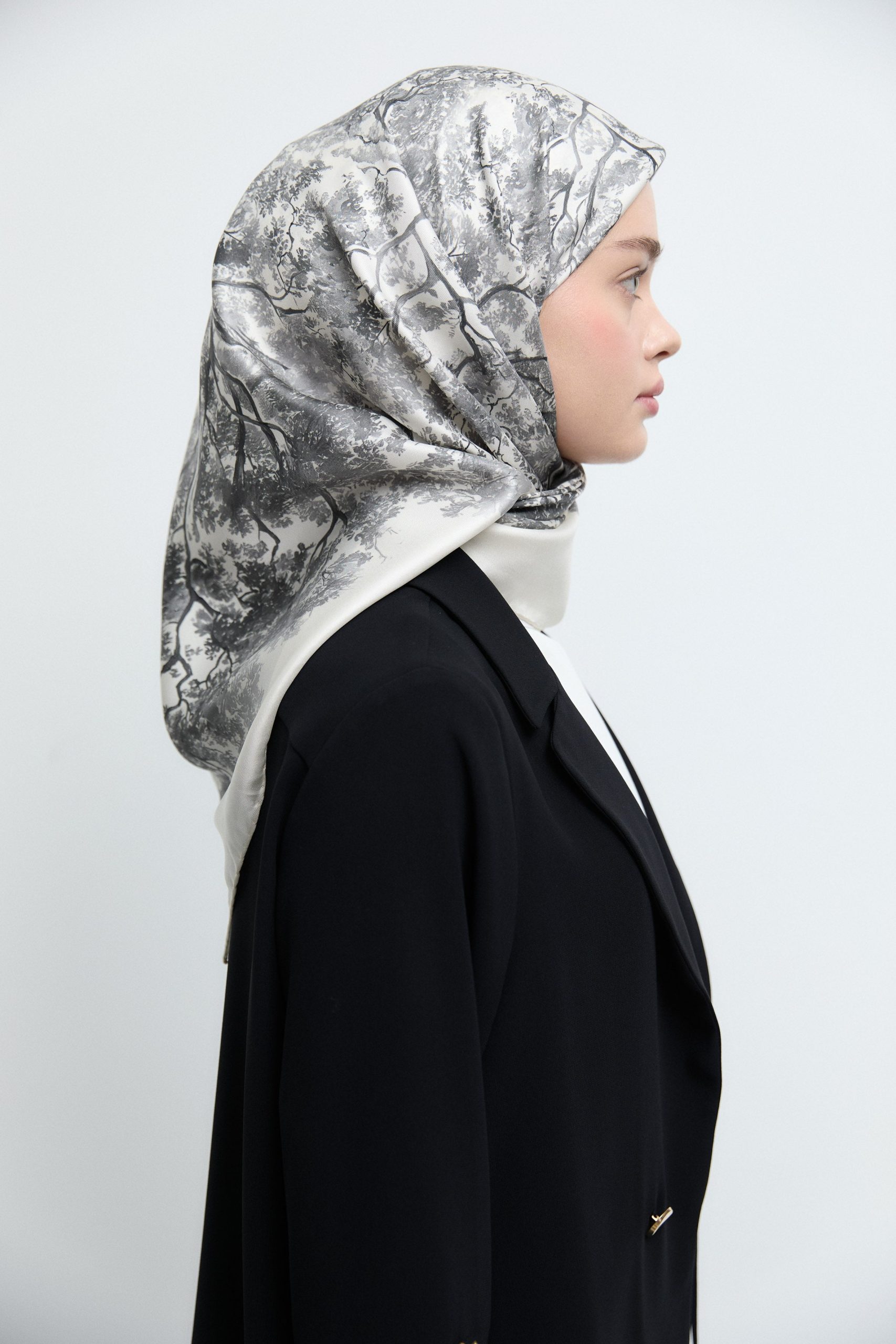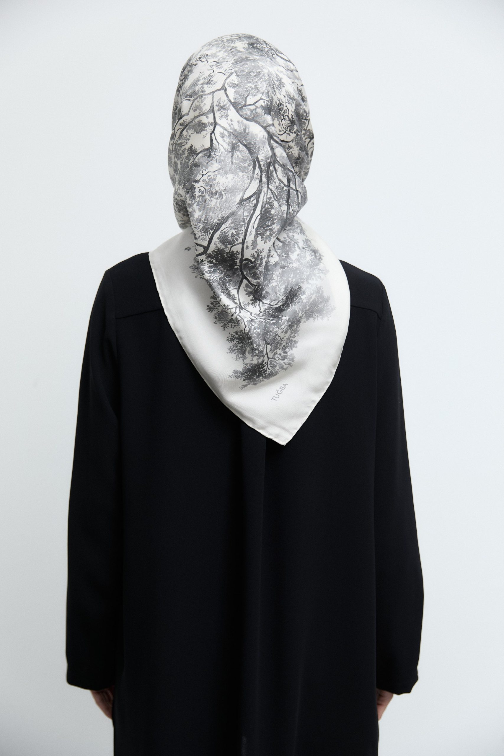 Tags: abstract pattern, fashion accessory, luxury scarf, silk scarf, twill silk, white scarf
