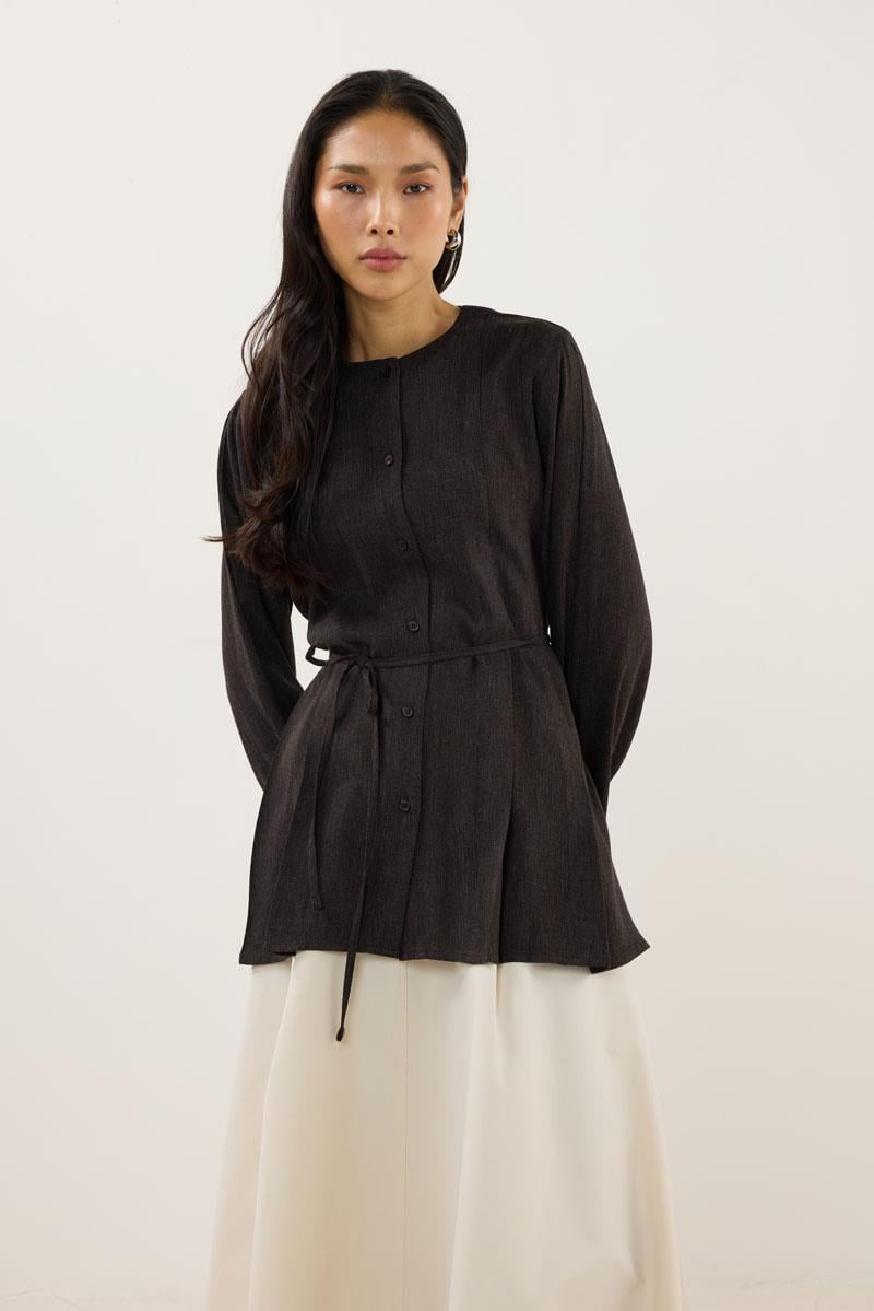 Pleated Collar Detail Tunic – Black