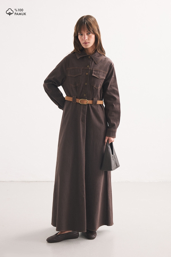 Tags: belted dress, casual dress, coffee color, cotton dress, Denim Look, women's fashion
