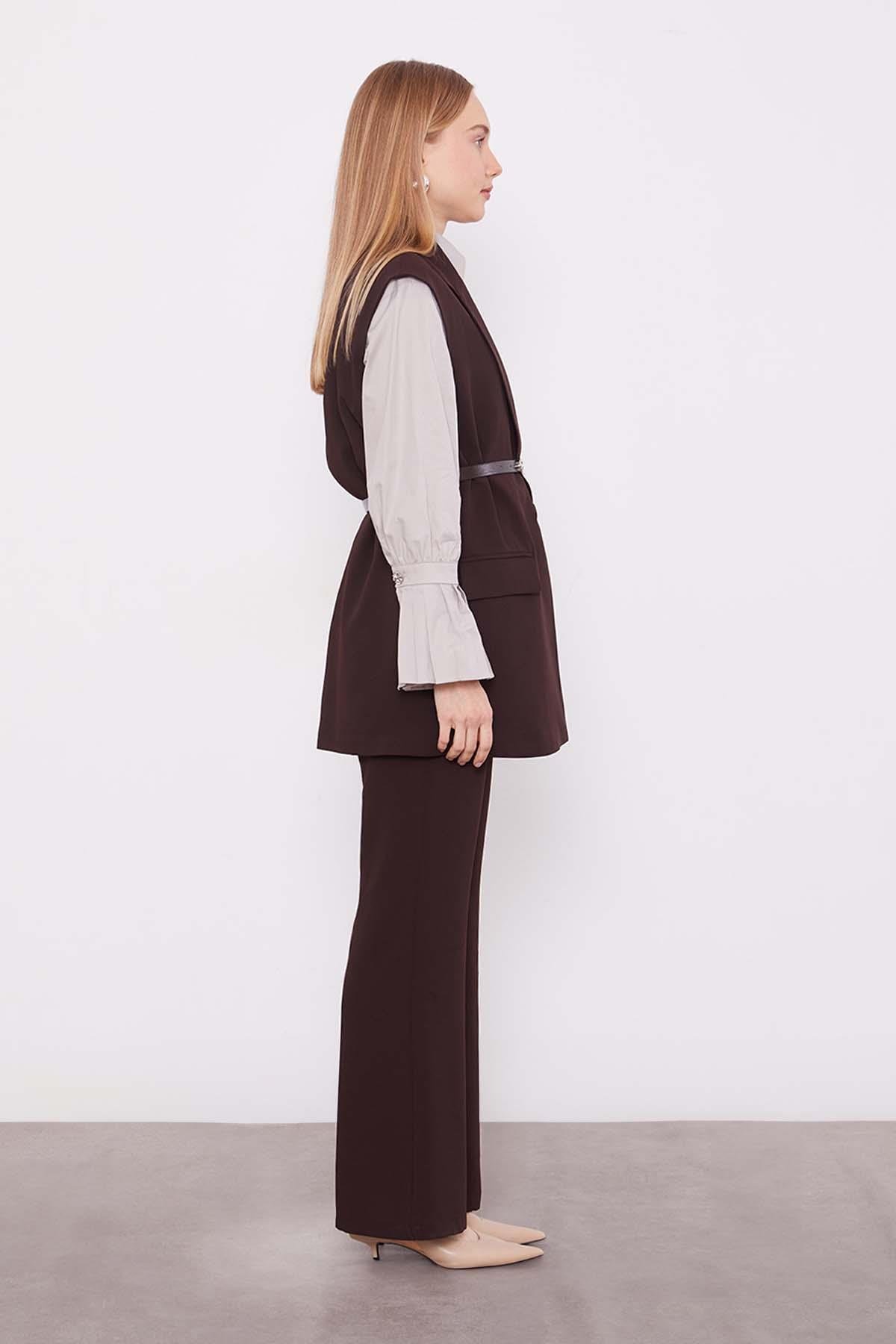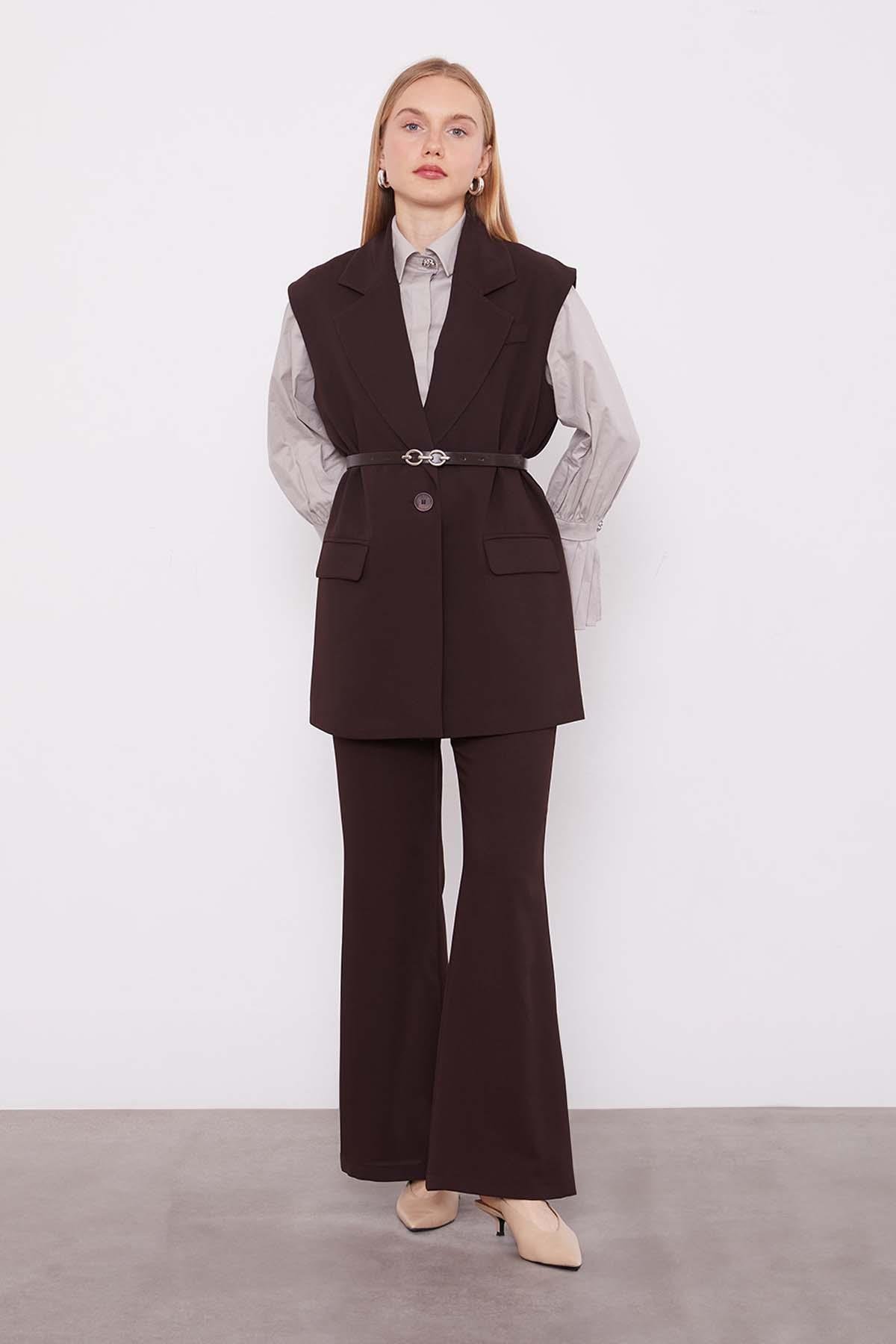 Tags: coffee brown, elegant outfit, sophisticated style, two-piece set, versatile clothing, vest set, women's fashion