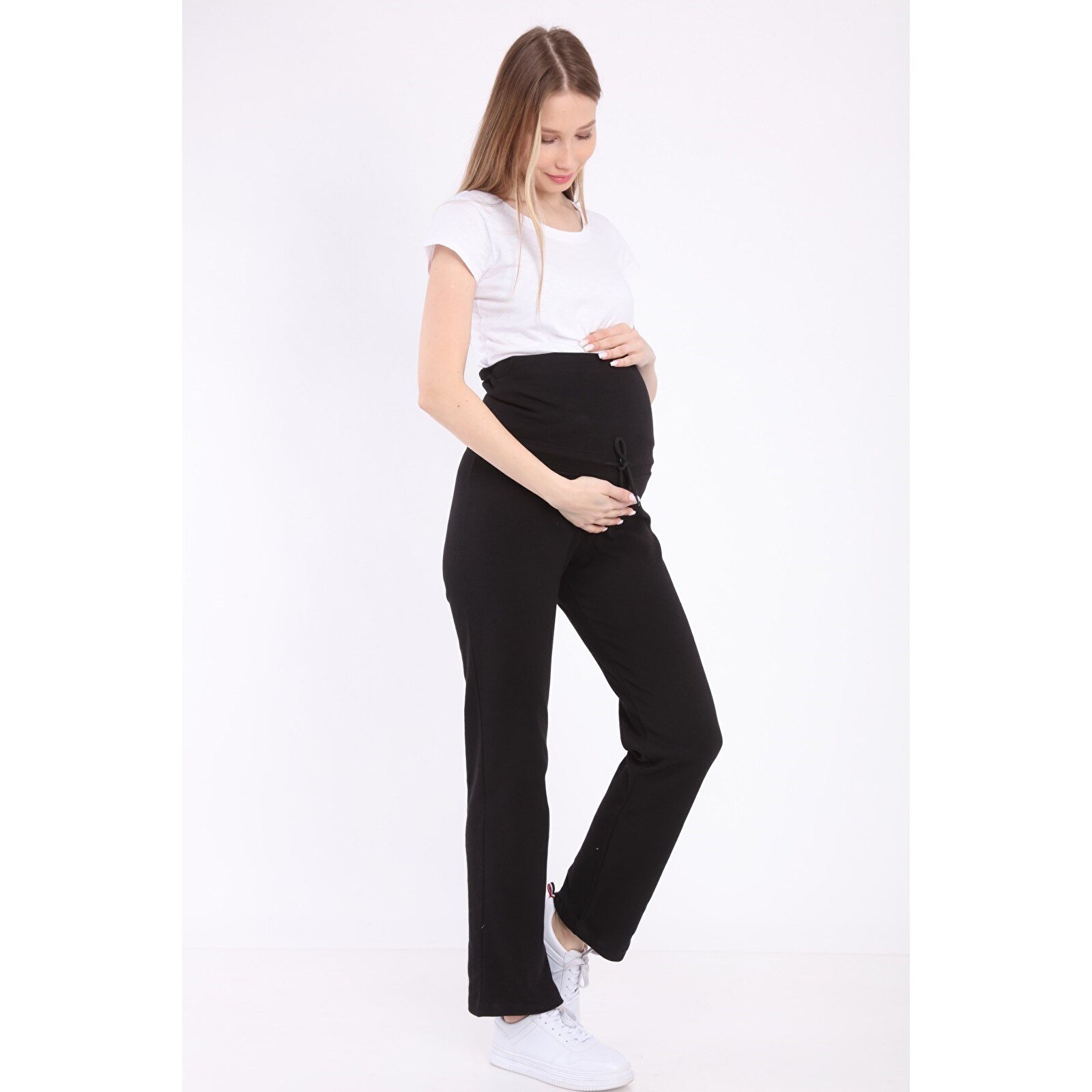 Black Adjustable Elastic Waistband Women’s Maternity Sweatpants