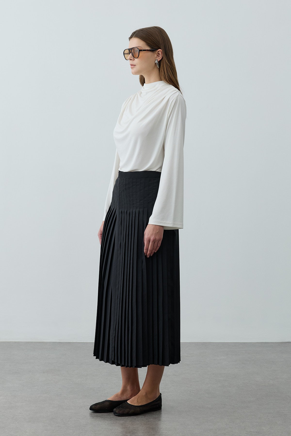 Girl’s Lace Detail A-Line Crinkle Pleated Midi Skirt