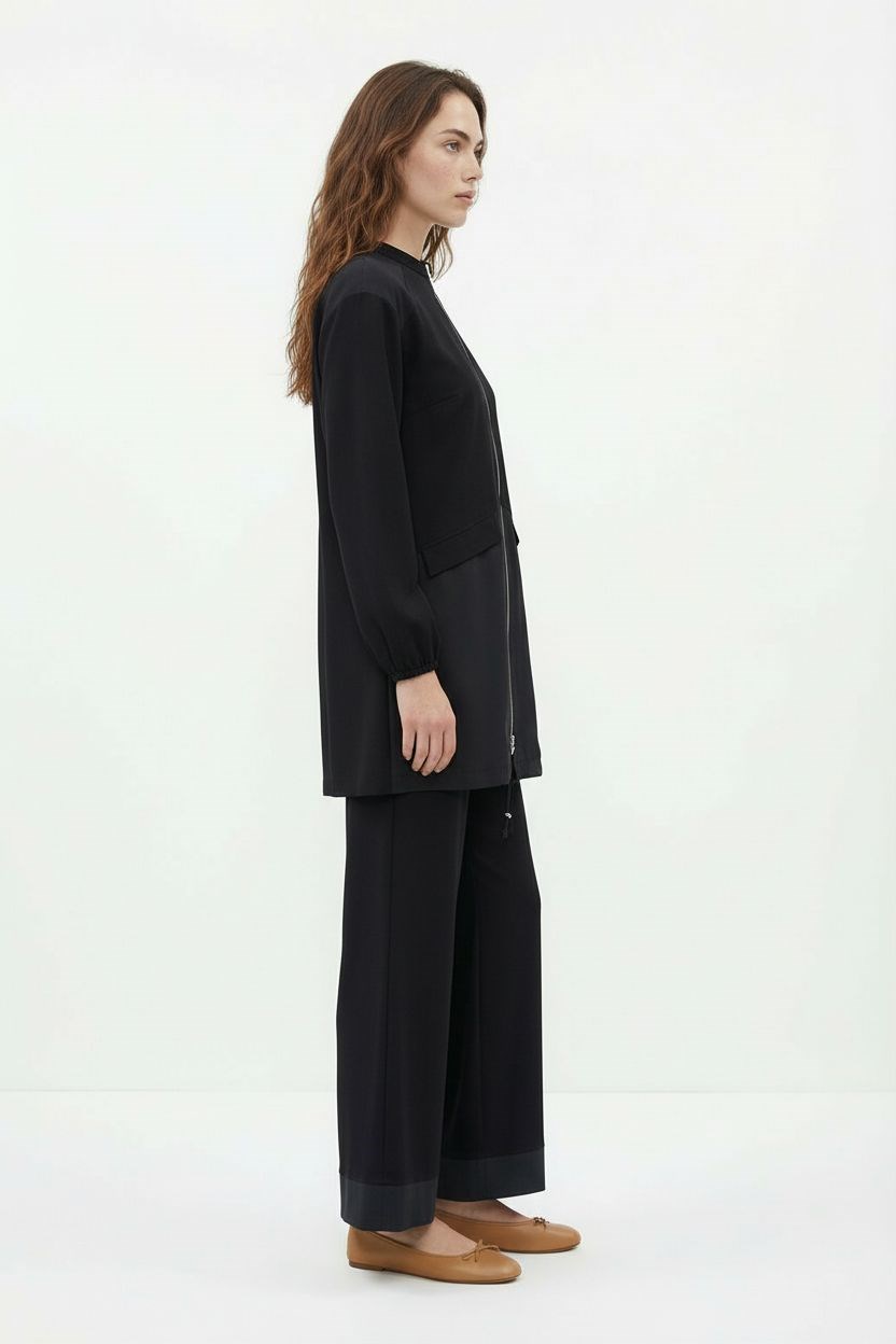 Achieve an elegant look with the Black-Garnet Detailed Tracksuit, designed for those who seek sophistication in the details. Ideal for daily wear and special combinations.