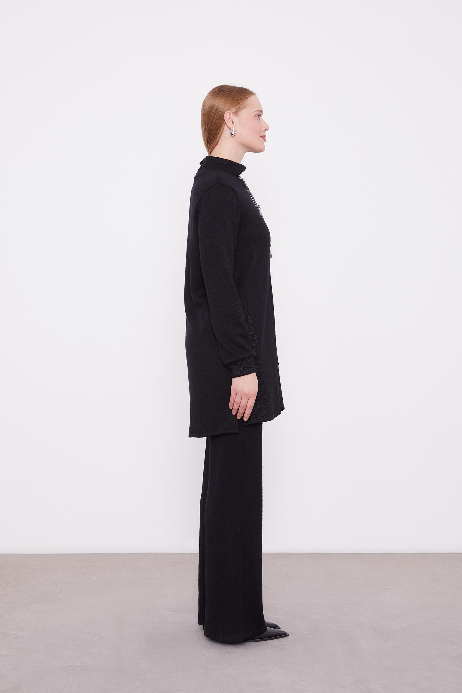 Black Glitter Cashmere Fabric Two-Piece Set