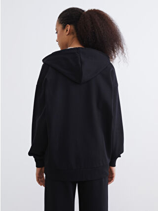 Black Hooded Women’s Thick Zippered Sweatshirt