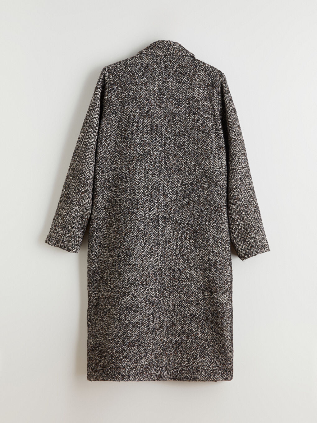 Tags: herringbone pattern, jacket collar, loose fit, outerwear, winter coat, women's coat, wool coat