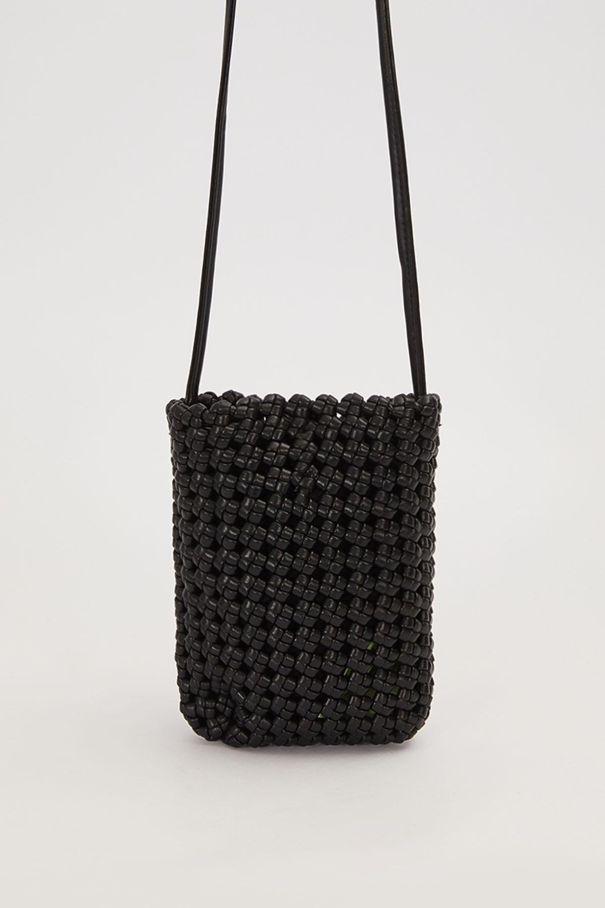 Black Knit Pattern Shoulder Bag with Gold Buckle