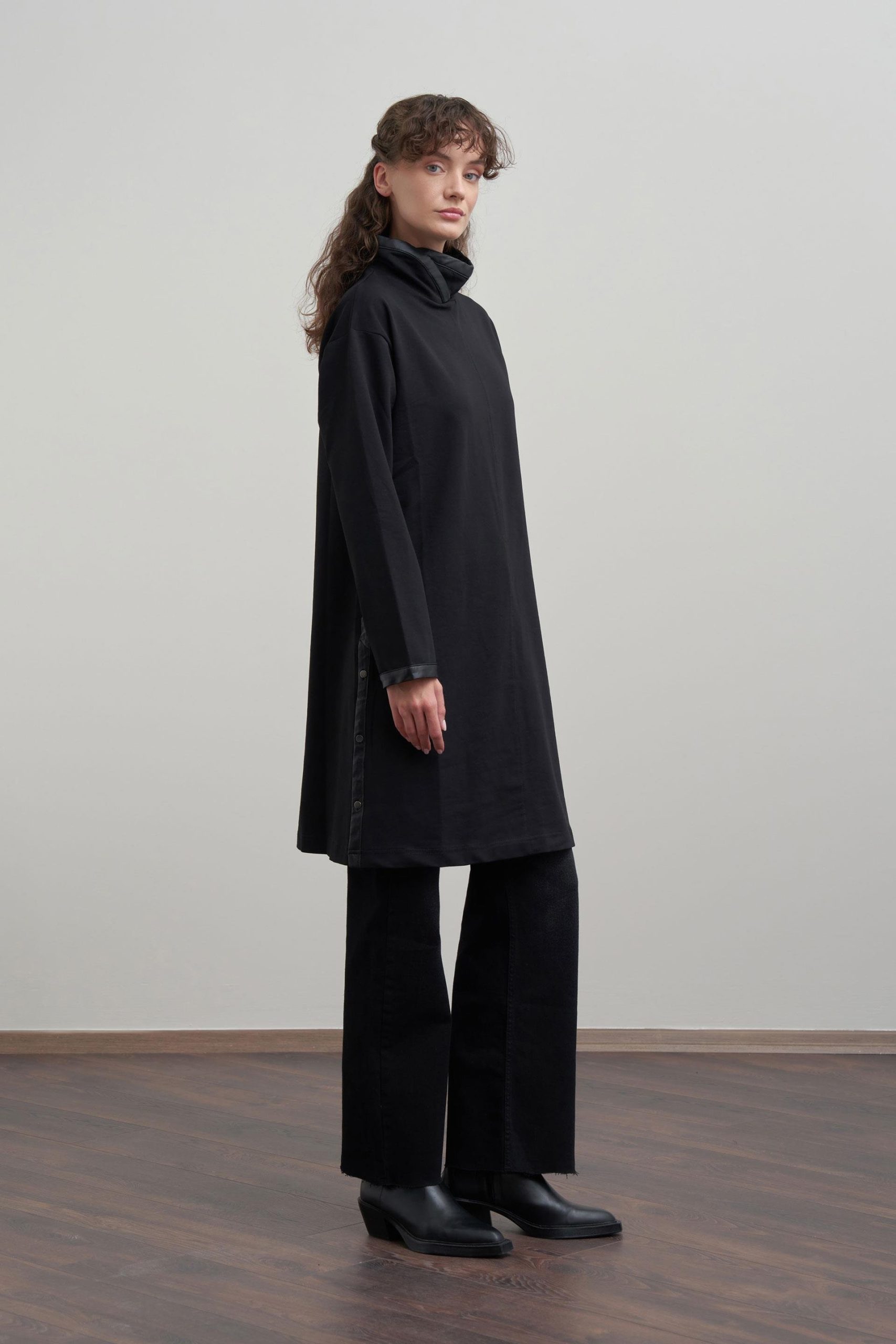 Achieve an elegant look with the Black Leather-Trimmed Cotton Long Tunic, designed for those who seek sophistication in details. Perfect for daily wear and special occasions, this ideal design is available at ALLDAY!
