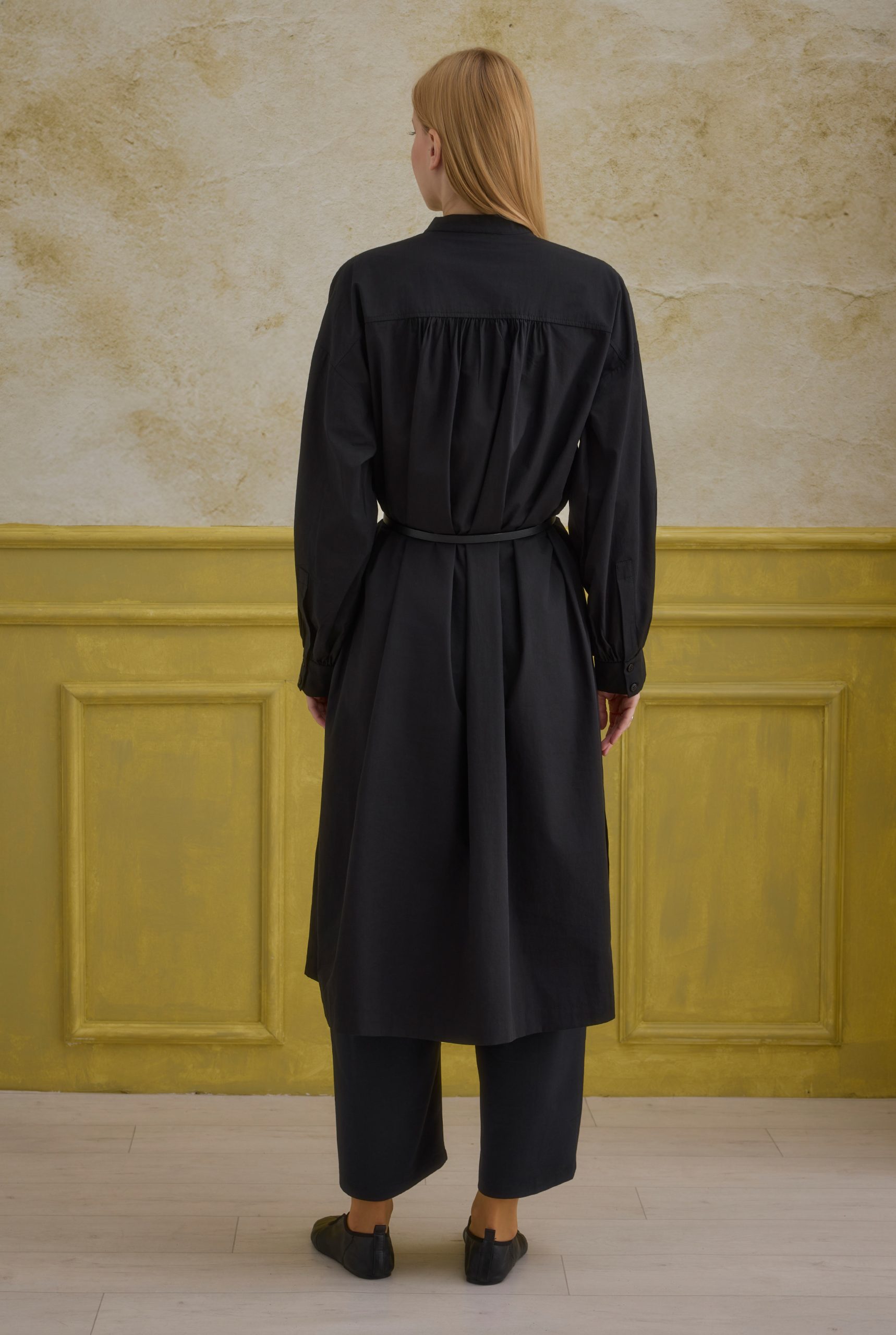 Crafted from 100% cotton yarn, this long tunic with a mandarin collar offers breathable, skin-friendly comfort and a natural feel. Cotton fibers provide all-day freshness while adding an elegant touch. Delicate gathers on the sleeves introduce graceful movement and stylish detail to the design. Its basic silhouette ensures comfortable yet modern styling for everyday outfits.