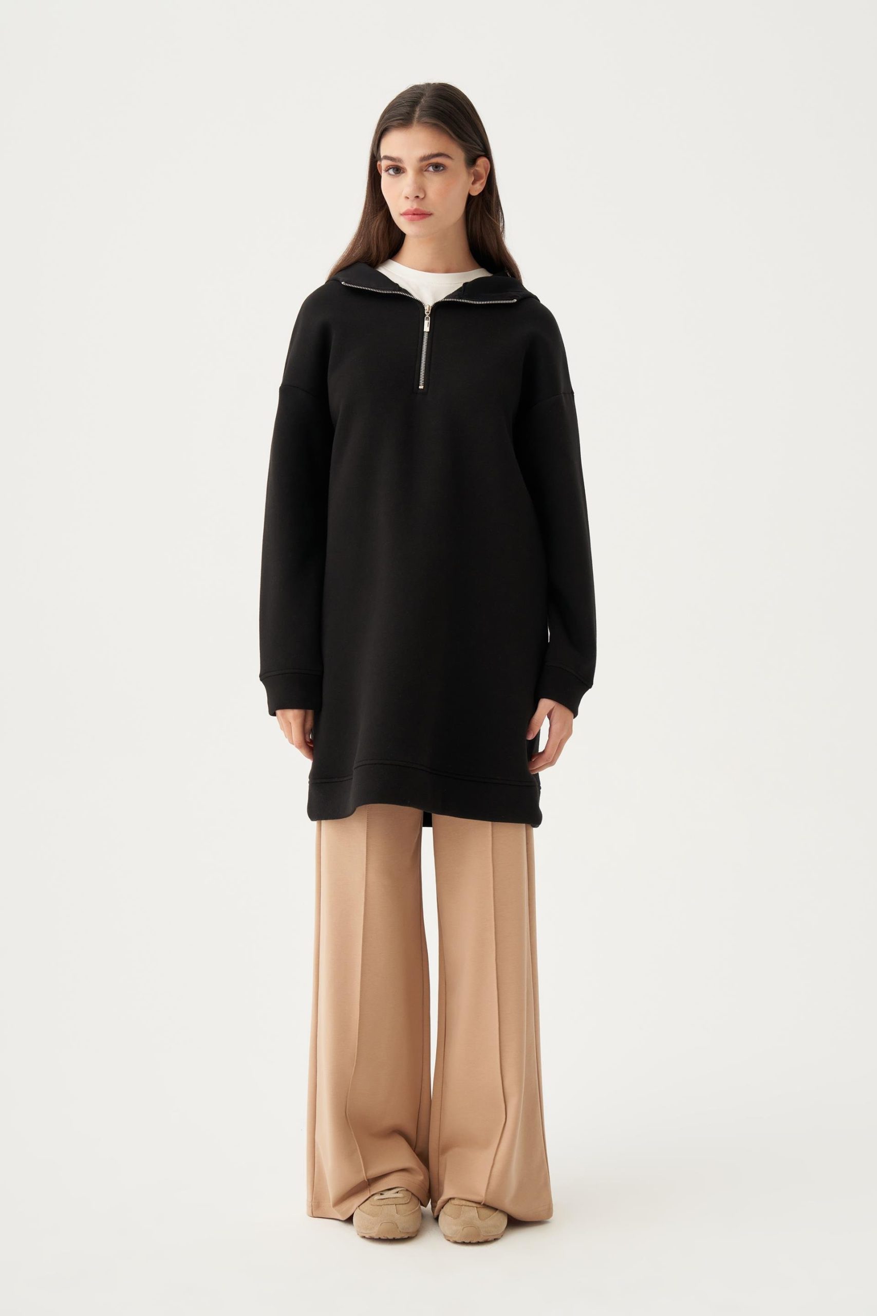Tags: Allday, black, cotton, hooded, knitted, Oversize, pocket detail, ribbed, tunic, winter fashion