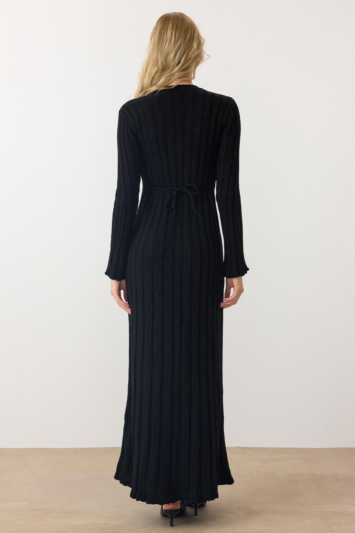 Black Ribbed Thick Knit Turtleneck Long Dress 9363-E