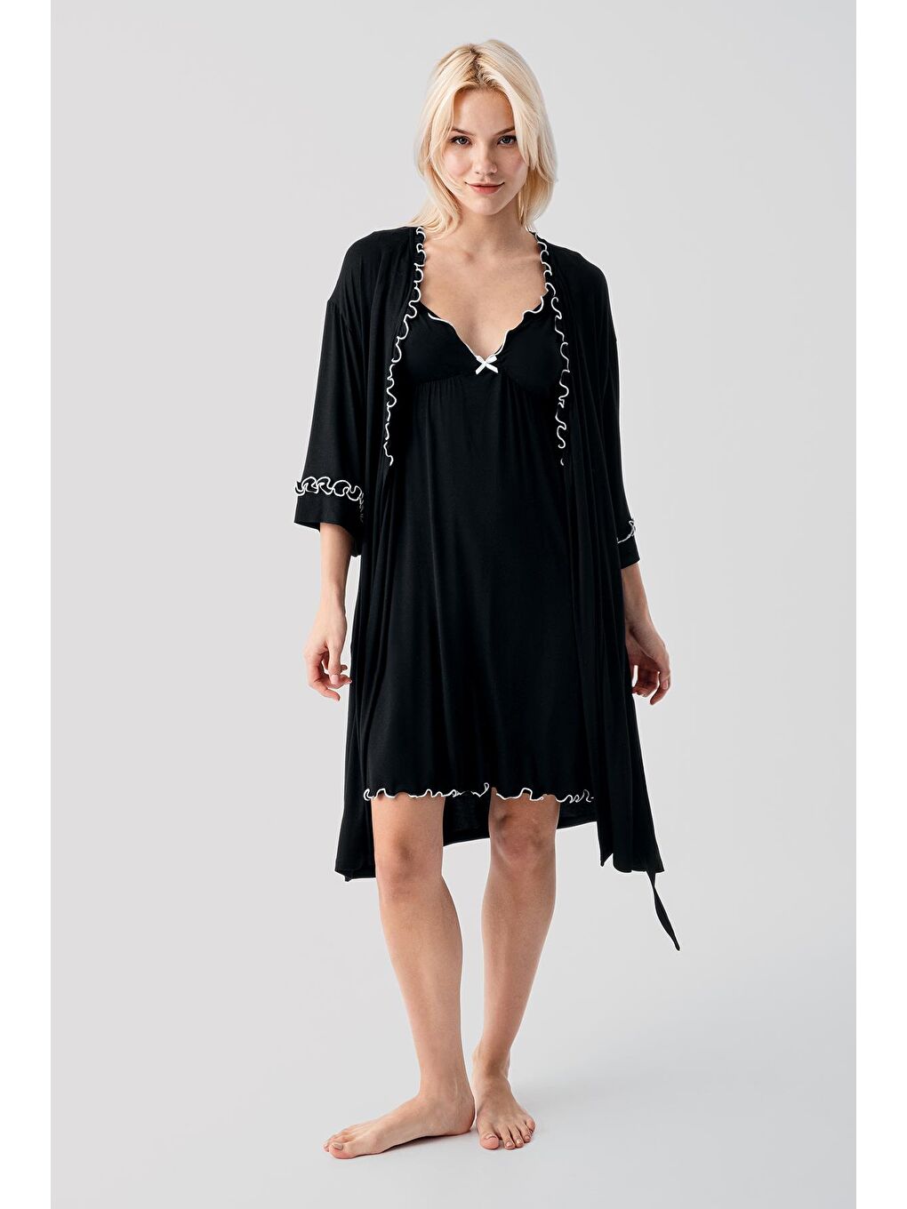 Tags: black nightdress, comfortable loungewear, maternity nightwear, strappy robe, viscose set