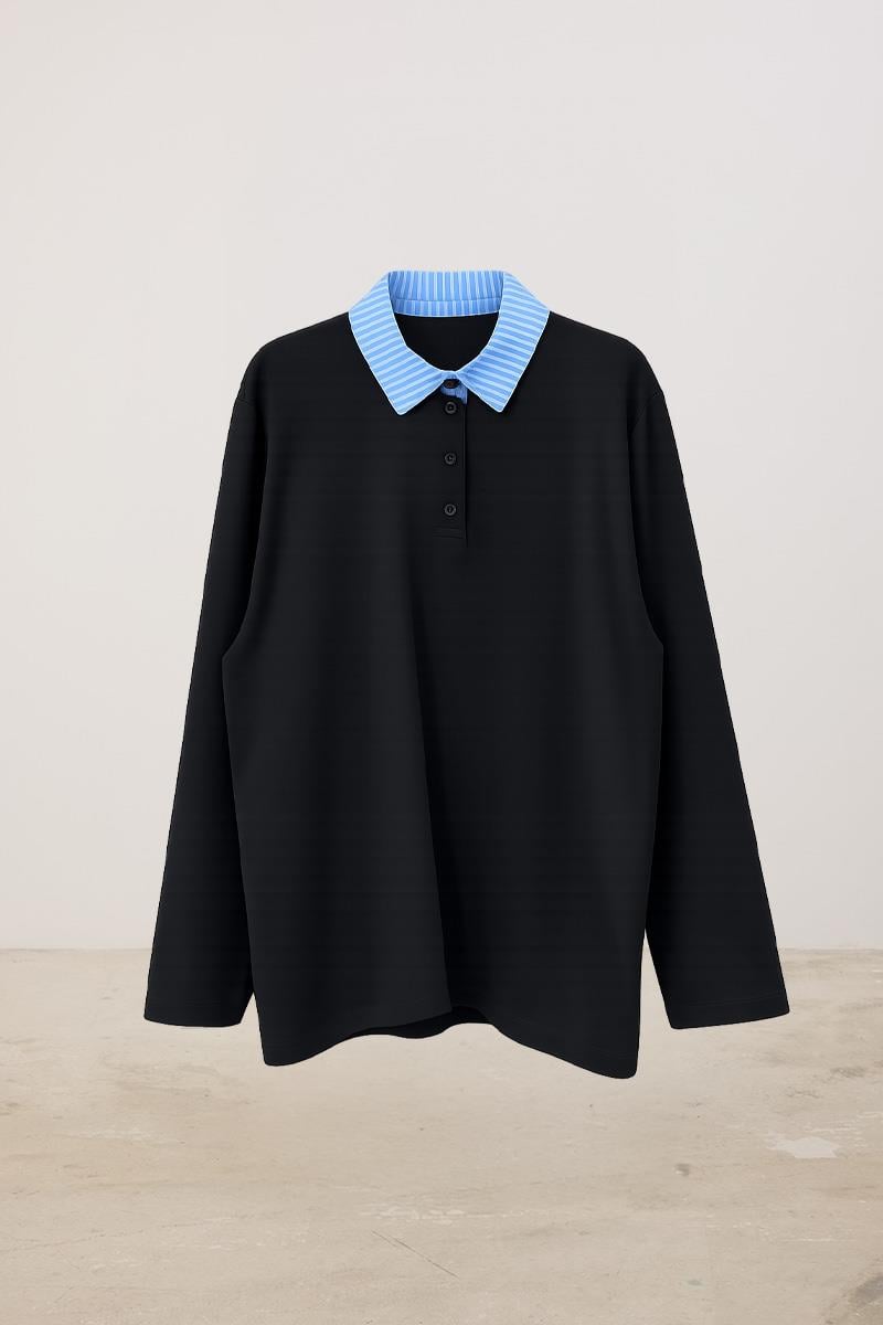 Be the first to review “Black Striped Polo Collar Sweatshirt” Cancel reply