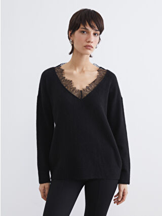 LCW Vision Black V-Neck Lace Detail Oversize Women’s Knit Sweater is available at LCW with exclusive discounts, installment payment options, and cash-on-delivery advantages! Shop online now and get the product delivered to your door! – W5OJ84Z8-CVL