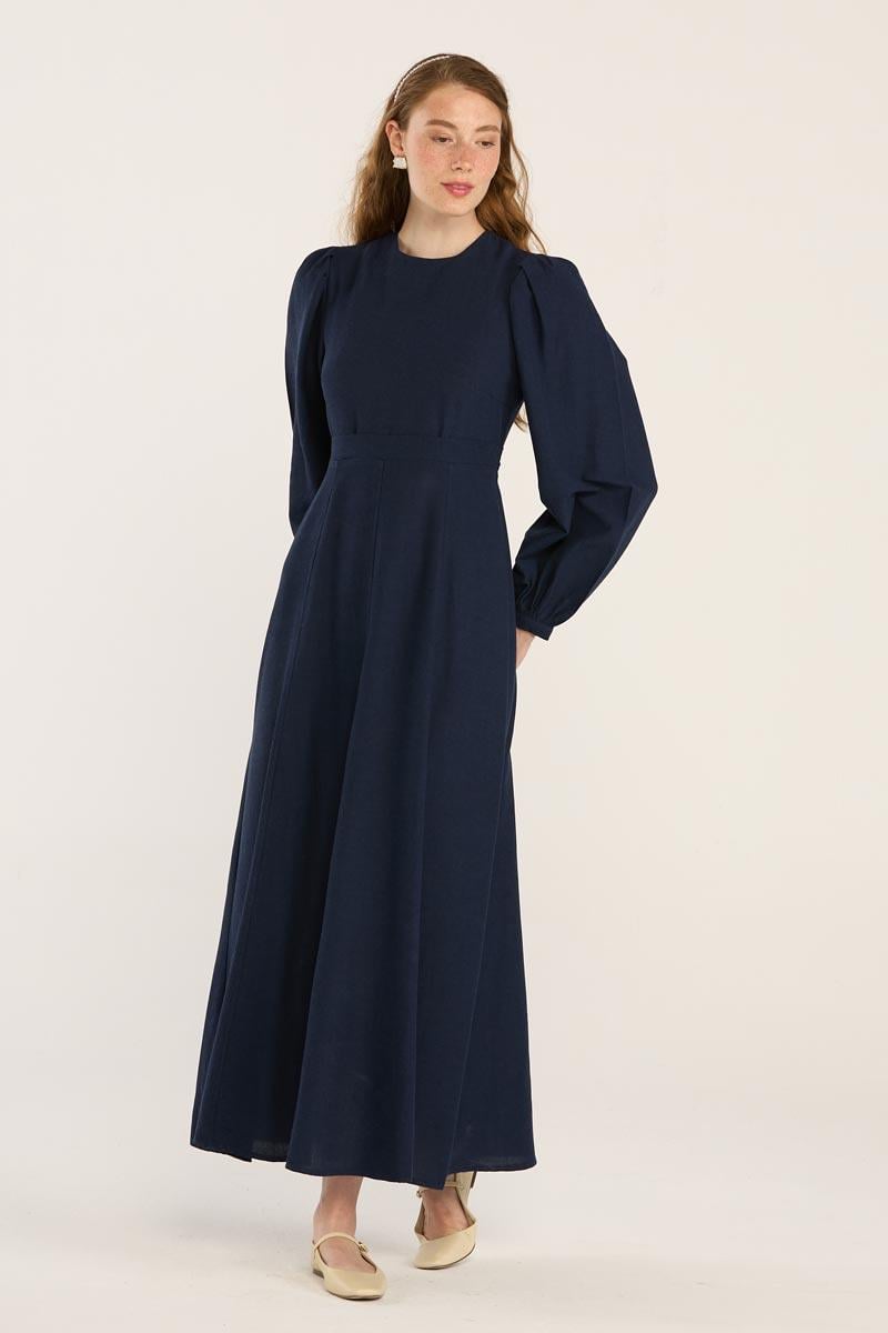 Navy Blue Flared Dress with Wide Cuffs