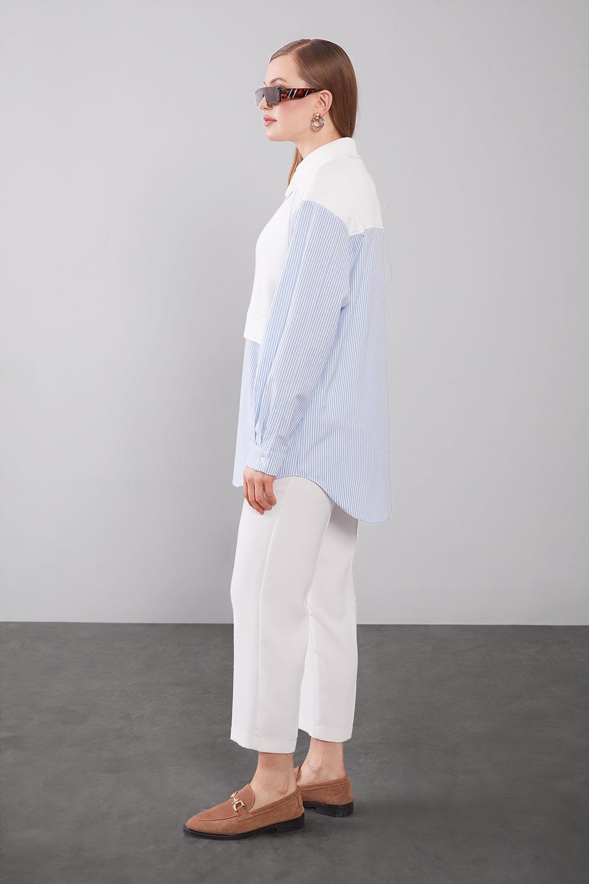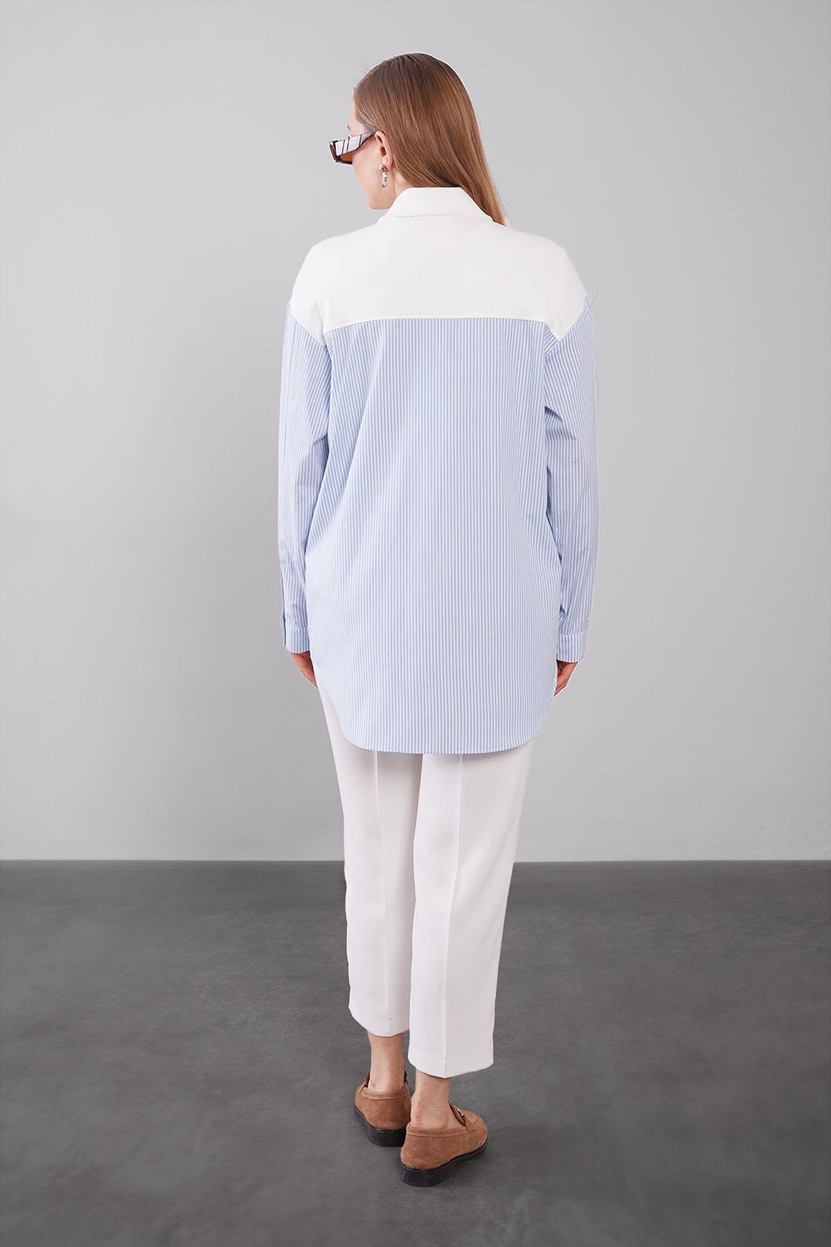 This thin striped shirt is an essential piece for both casual and classic outfits with its elegant appearance. The delicate thin stripe detail gives the shirt a modern feel while providing a more balanced look to the body. For office elegance, you can pair it with tailored trousers, a seasonal trench coat, and high-heeled shoes. With its buttoned structure and classic collar detail, it draws attention in any setting. Our model, which maintains its place among stylish shirt options, allows you to look stylish at your invitations and meetings.