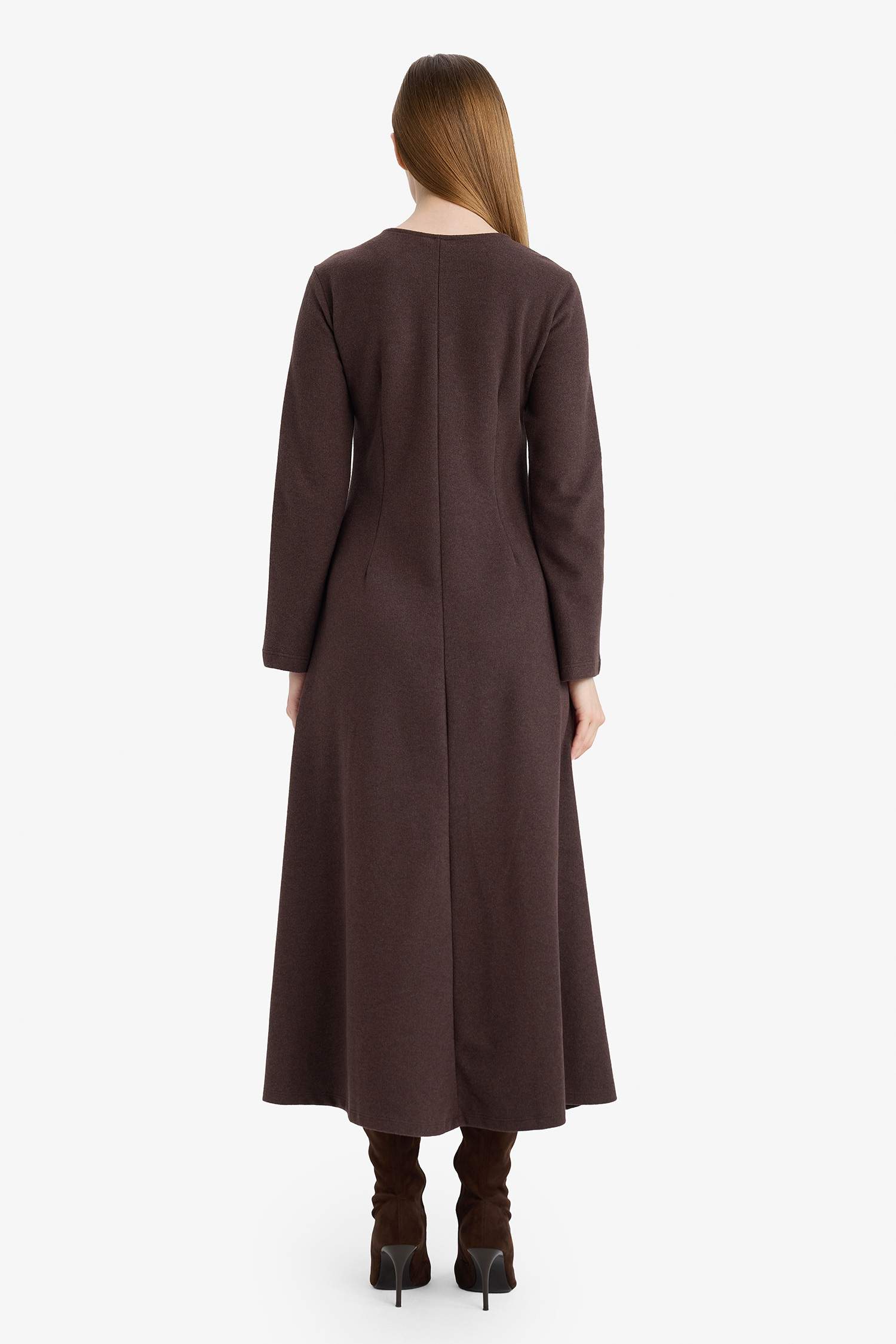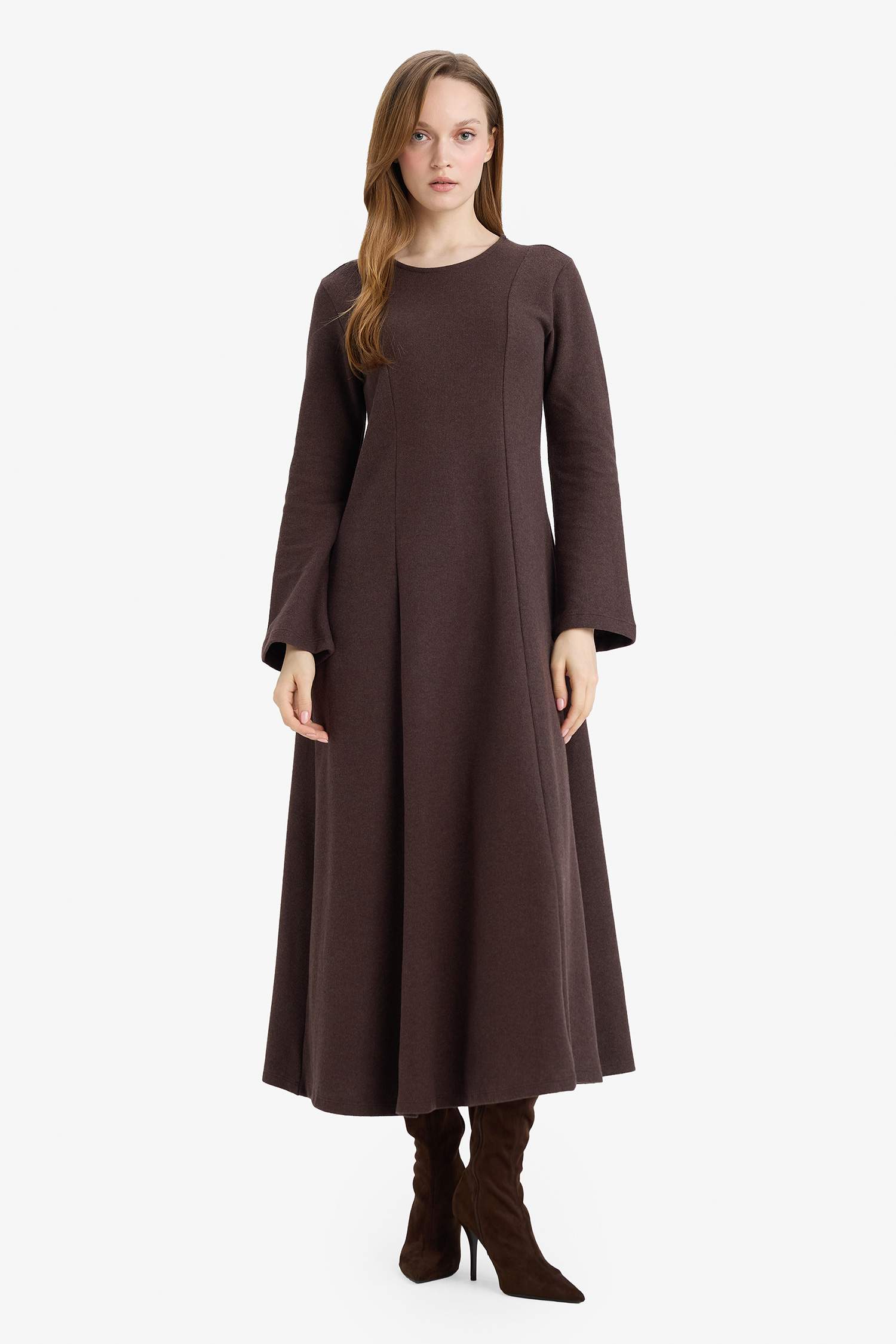 Tags: boat neck, Brown, long sleeve, maxi dress, Salonic Fabric, women