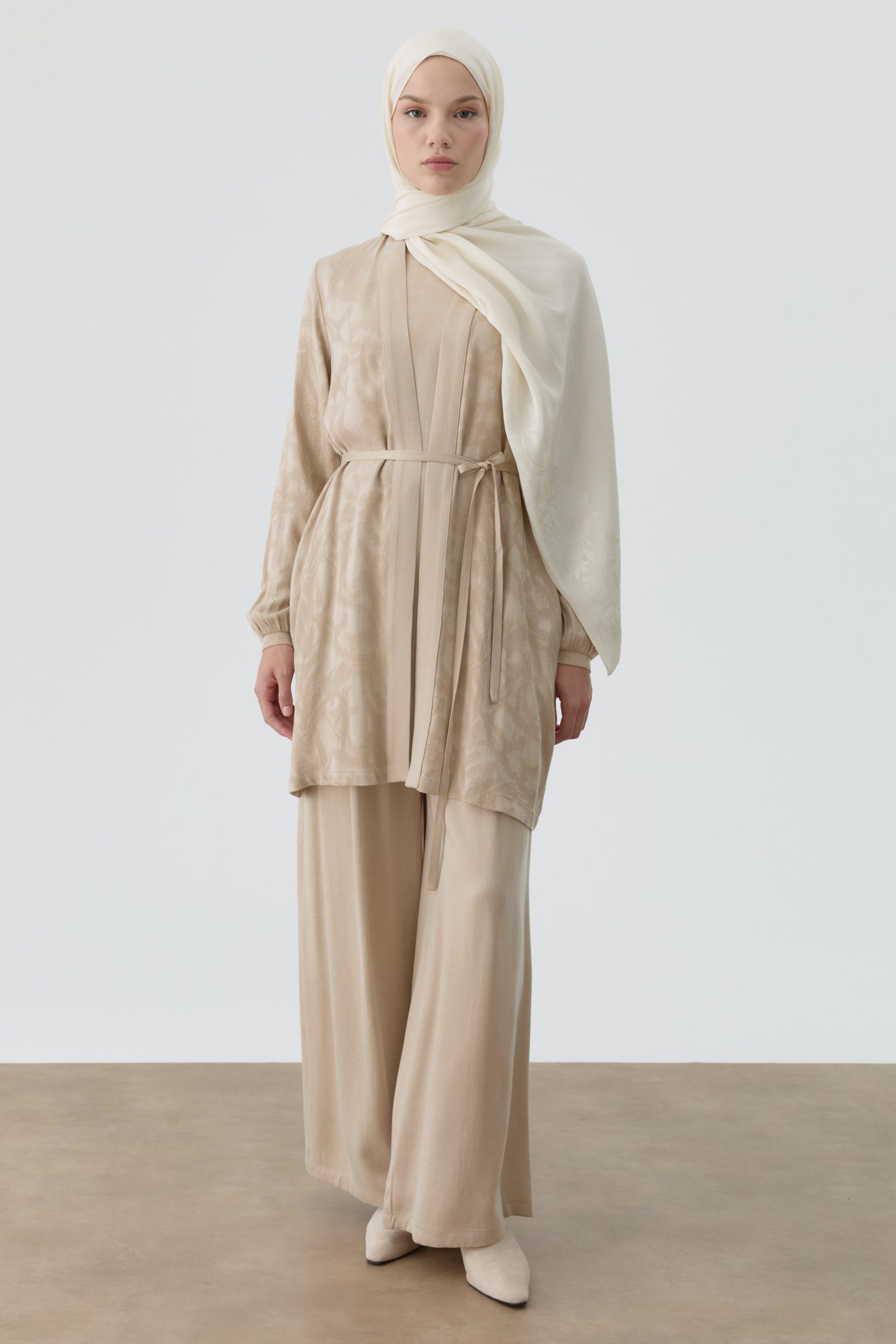 Bol Paça Beli Kemerli Pantolon – Bej
