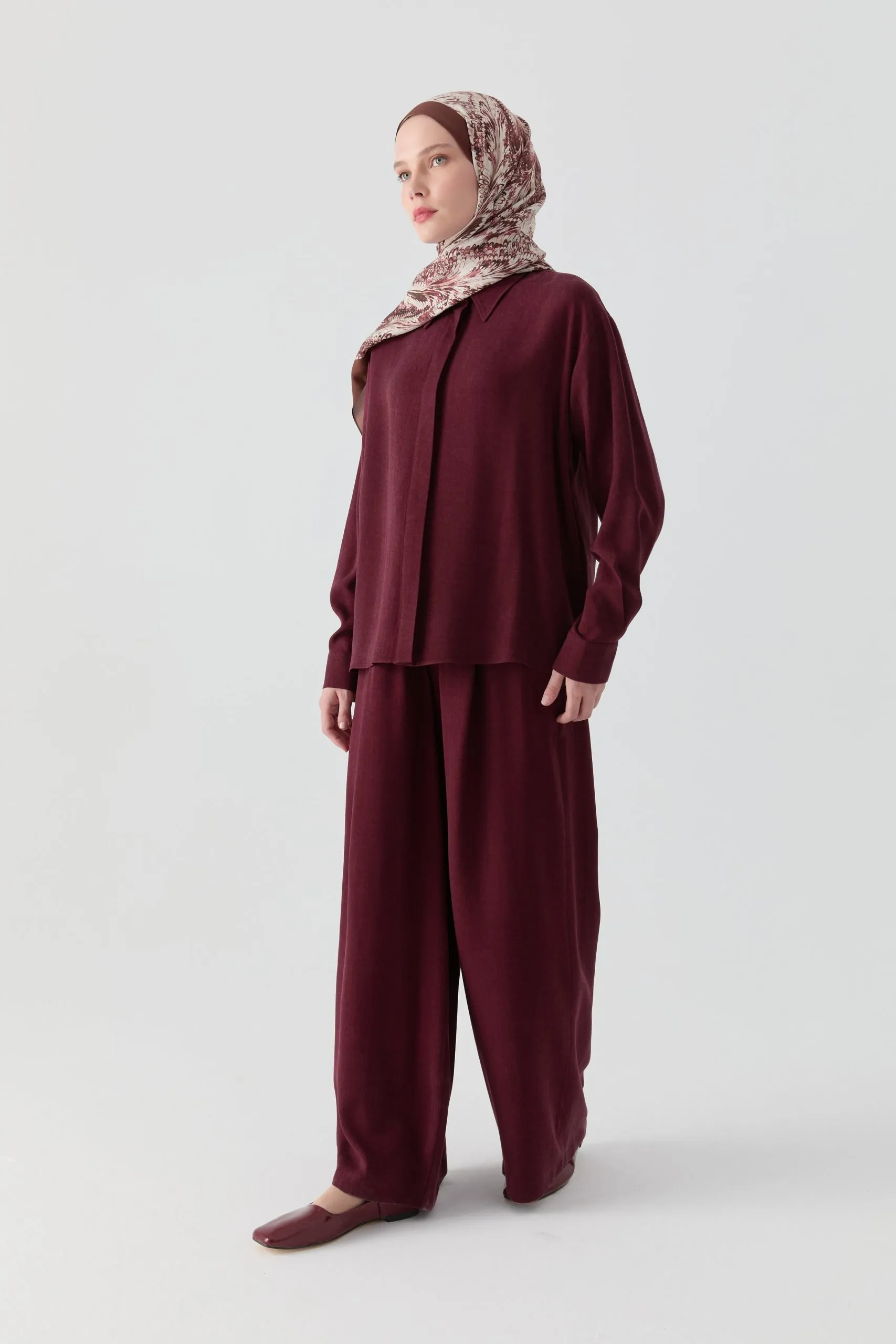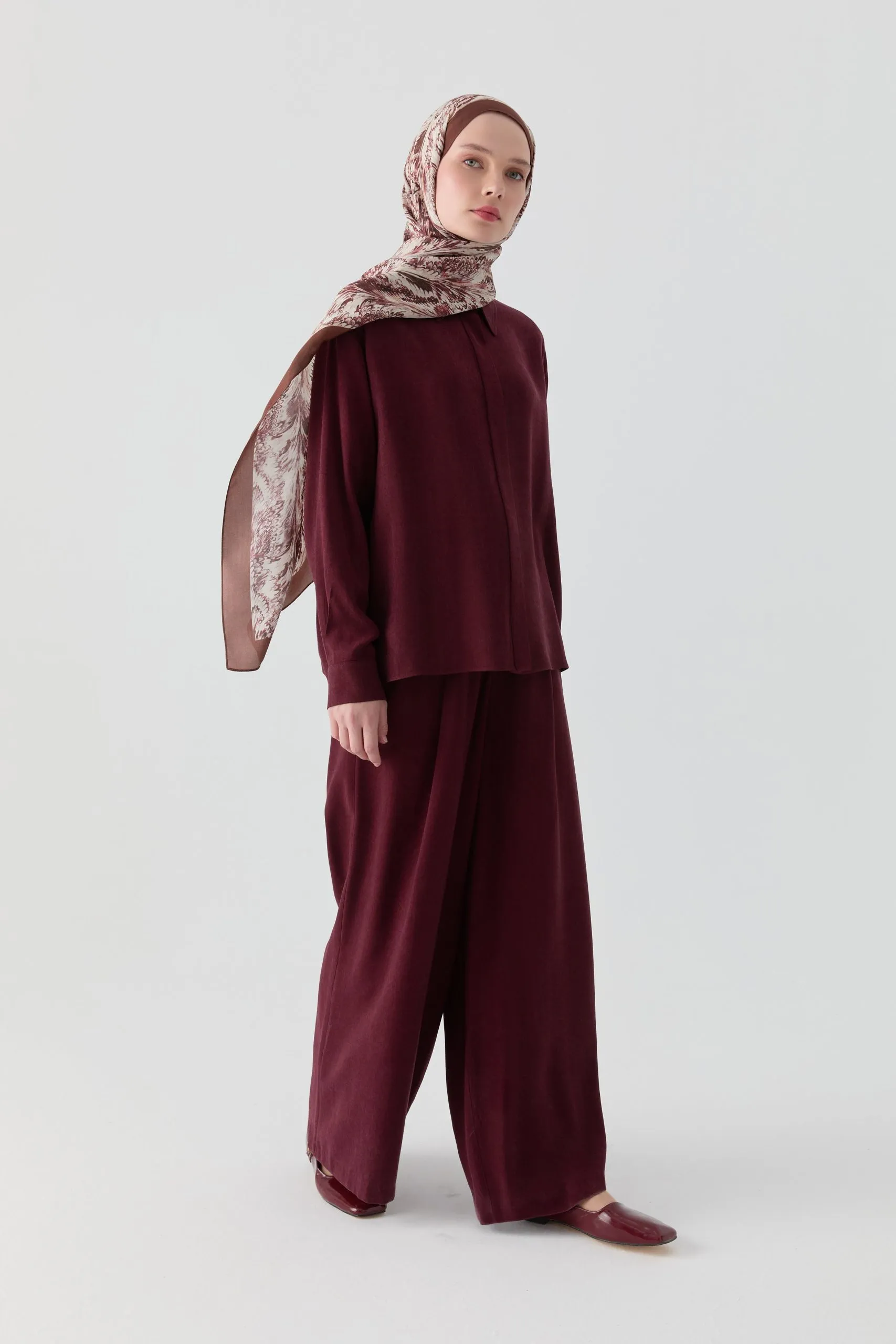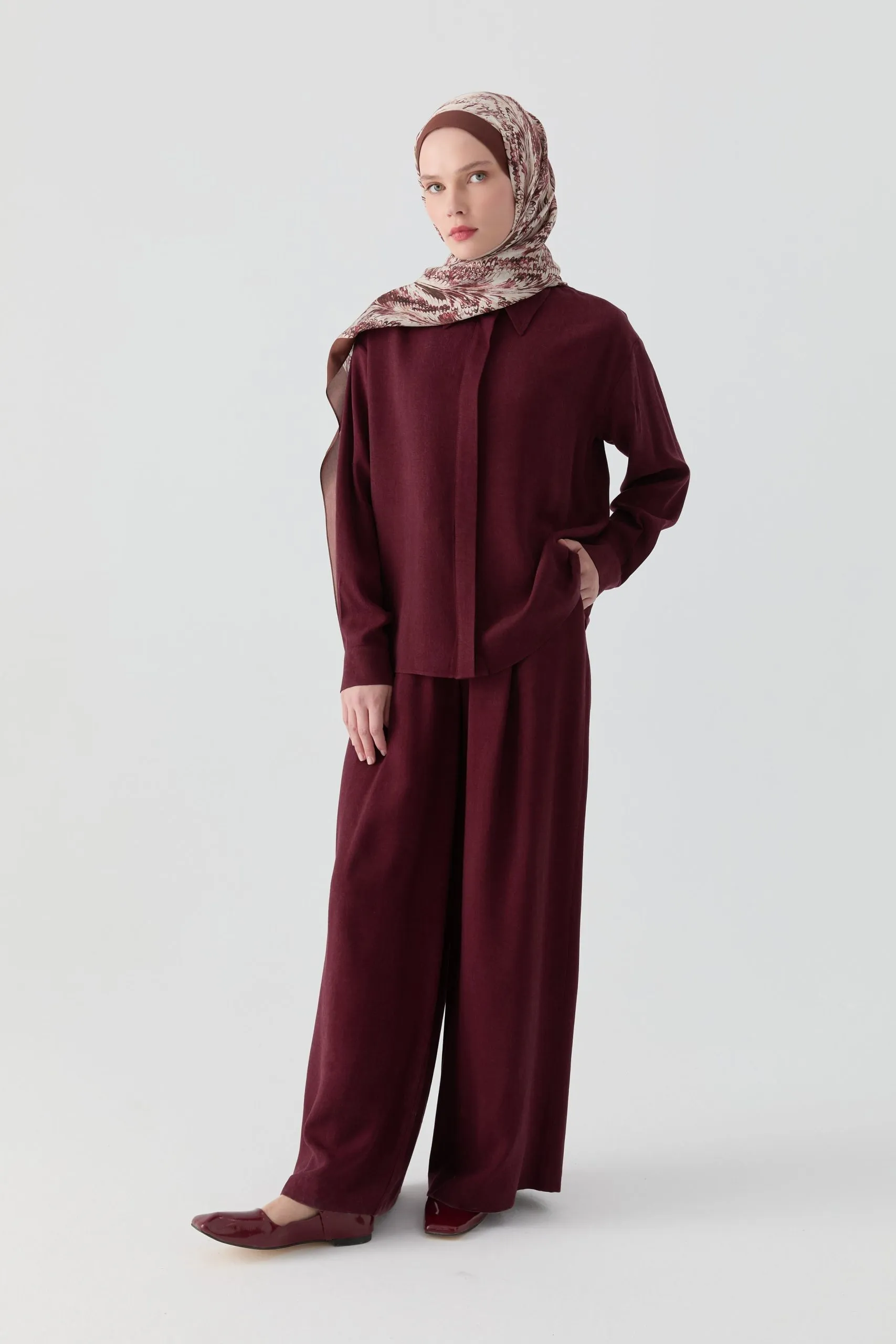 Zarif biçimde dökülen formu ve kusursuz kesimiyle bu bol paça pantolon, modern kadın siluetinin en sofistike hâlini yansıtıyor. Akıcı kumaş dokusu, her adımda zarafetle hareket ederken yüksek bel detayı vücuda dengeli bir duruş kazandırır.