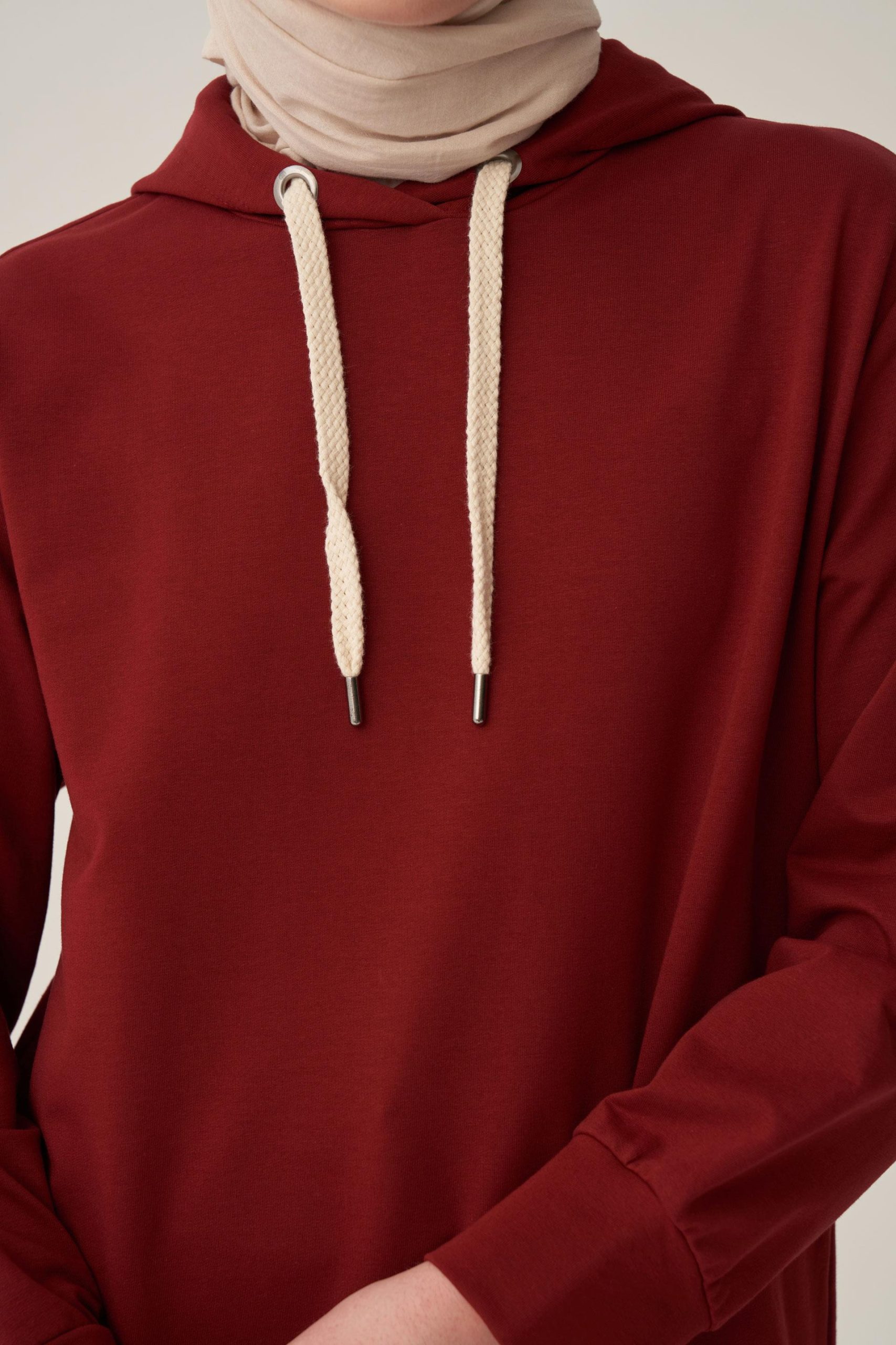 Bordo-Kapüşonlu Rahat Tunik