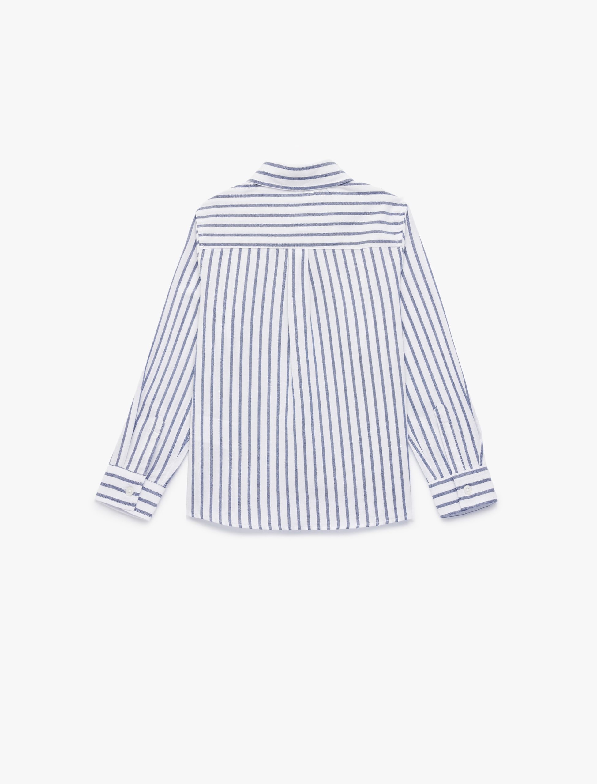 This striped shirt offers comfort with its classic design and high-quality cotton fabric. Its long sleeves and shirt collar make it suitable for year-round wear. Featuring button details and a simple design, this striped cotton shirt prioritizes your child’s comfort.