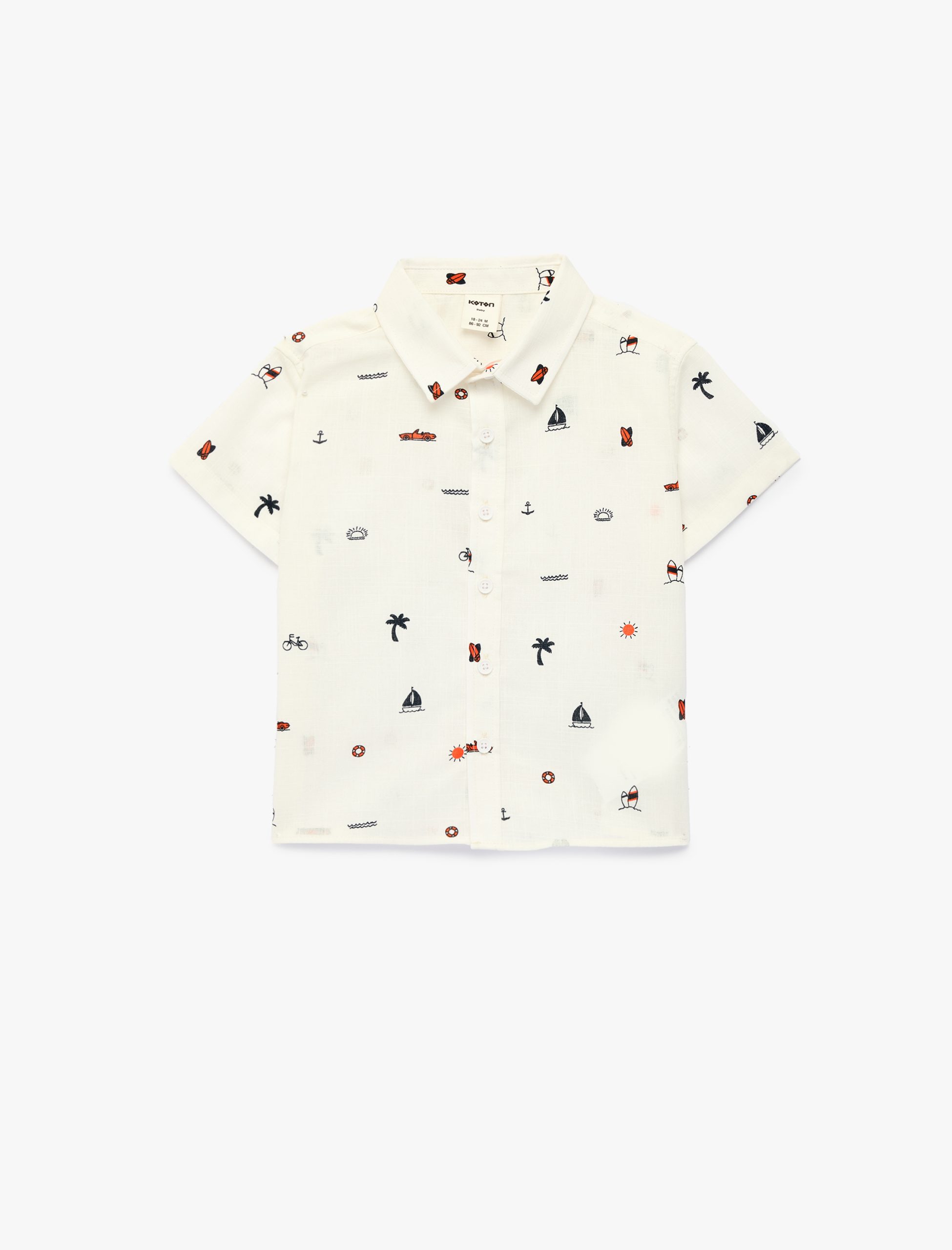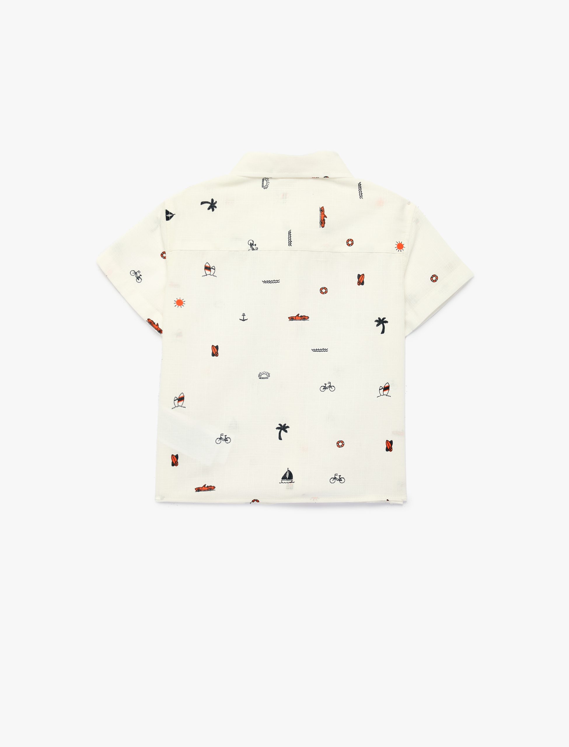 This cotton short-sleeve shirt stands out with its colorful and playful patterns. The patterned design reflects little ones’ energy while adding elegance with its classic collar. Its cotton texture and comfortable fit make it an ideal choice for summer months. The shirt features a design suitable for both casual wear and special occasions.