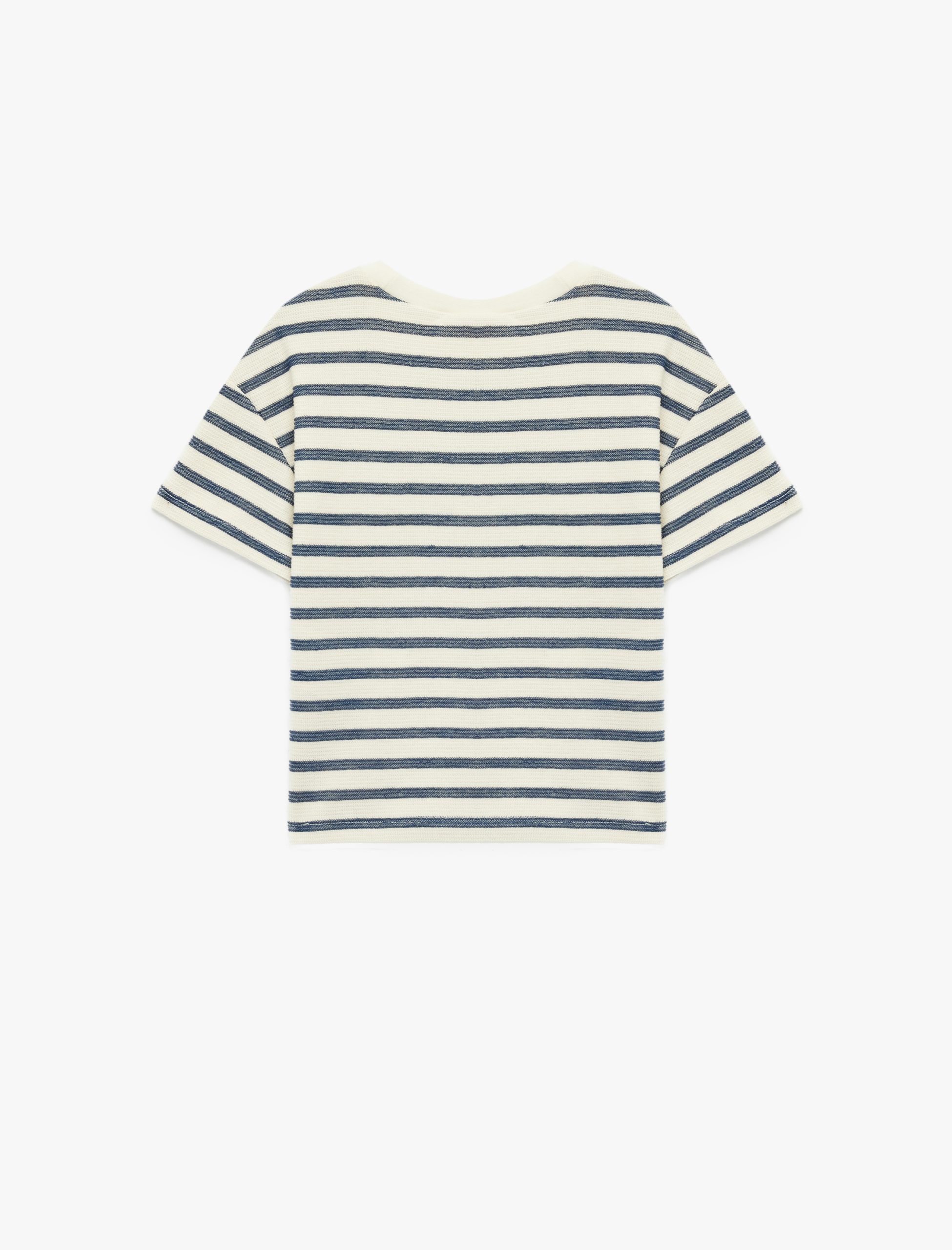 This adorable cotton t-shirt adds a fresh touch to your little one’s wardrobe. Its soft texture ensures all-day comfort, while the striped design brings an energetic vibe. With a relaxed fit that allows for easy movement, this t-shirt pairs perfectly with various bottom pieces.
