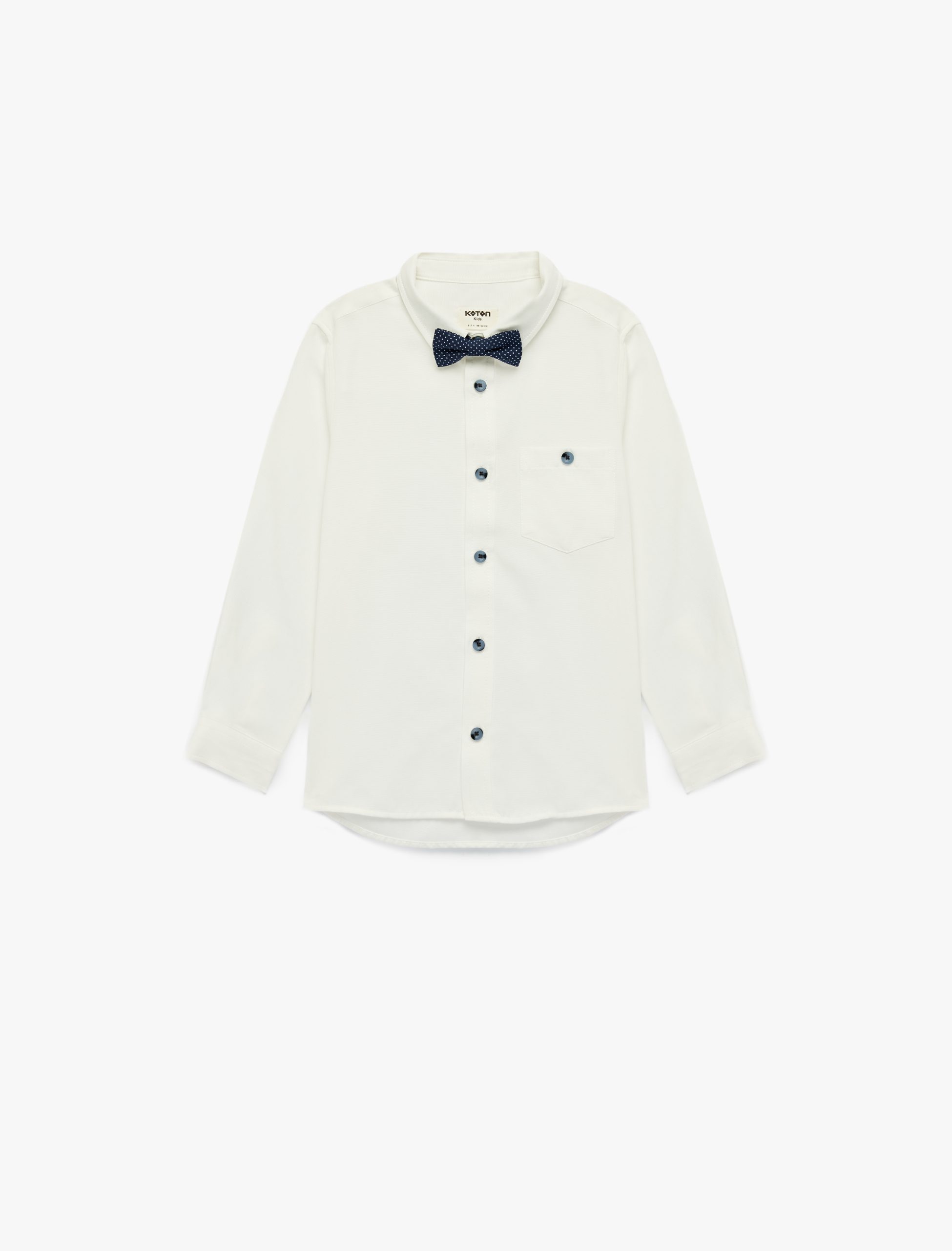 Boys’ Long Sleeve Shirt with Pocket Detail, Button Front and Bow Tie