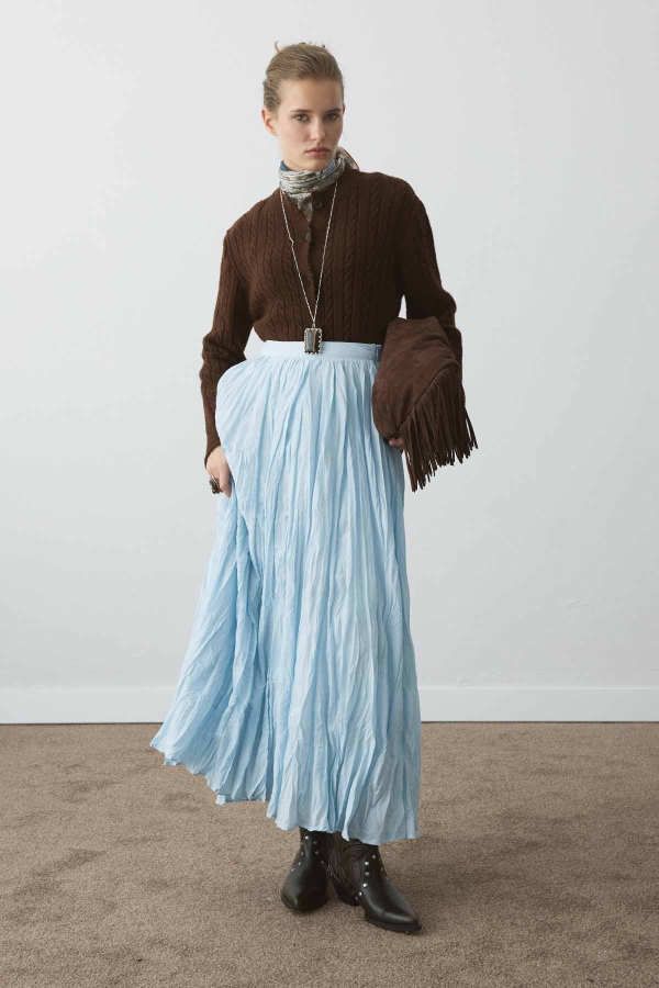 BRAIDED KNIT BROWN CARDIGAN FEATURES Crew neck, front button closure, regular fit braided knit cardigan. COMPOSITION AND CARE 75% Acrylic, 25% Polyester. Wash at 30°C on delicate, synthetic, and gentle cycles with cold water. Hand measurements may vary by 2-3 cm. Model Size: SM. Model Measurements: Height: 174 cm, Bust: 78 cm, Waist: 58 cm, Hips: 87 cm.