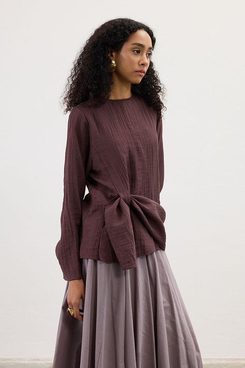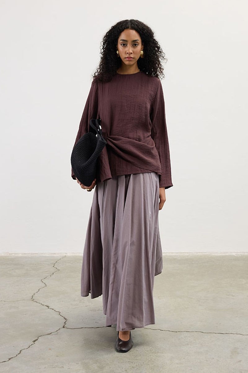 Tags: blouse, bridge detail, Brown, cotton viscose, long sleeve, women's fashion